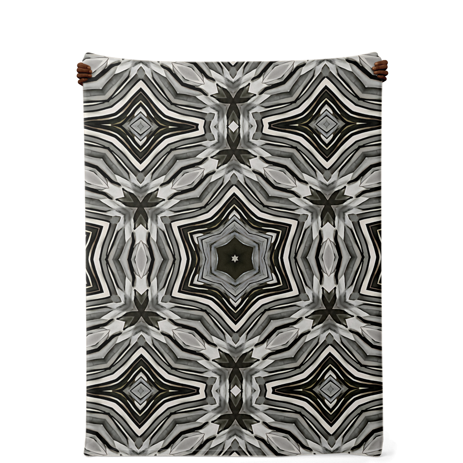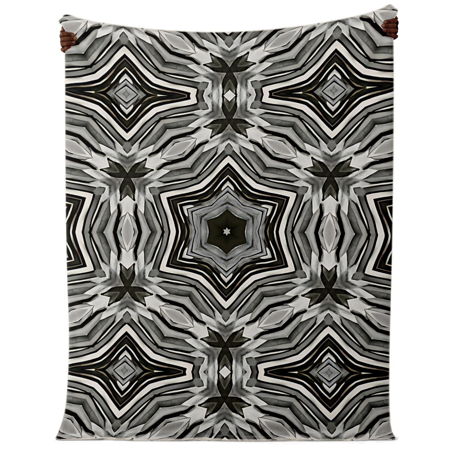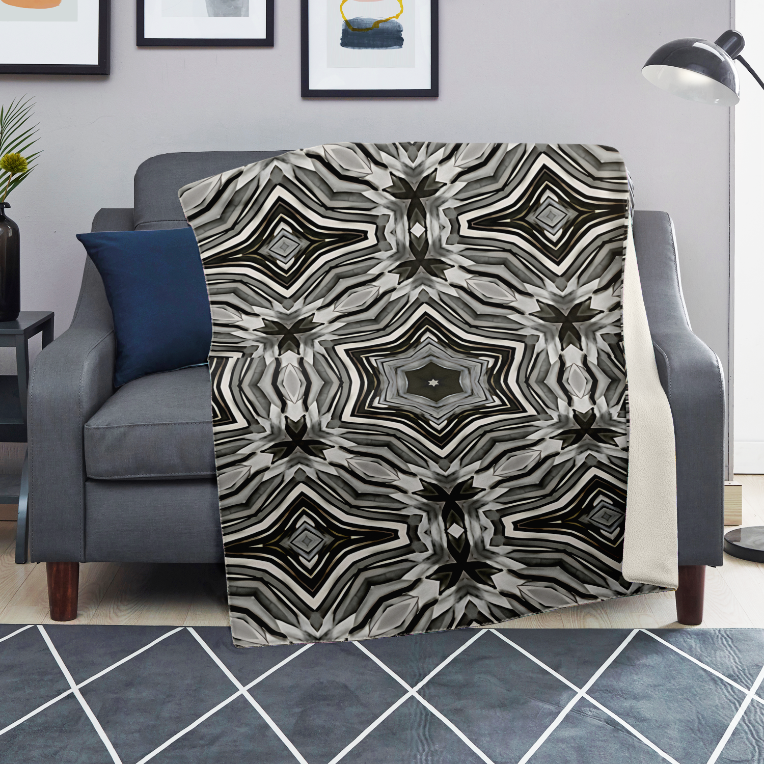 Blanket - Monochrome Kaleidoscope Pattern Premium Microfleece Blanket