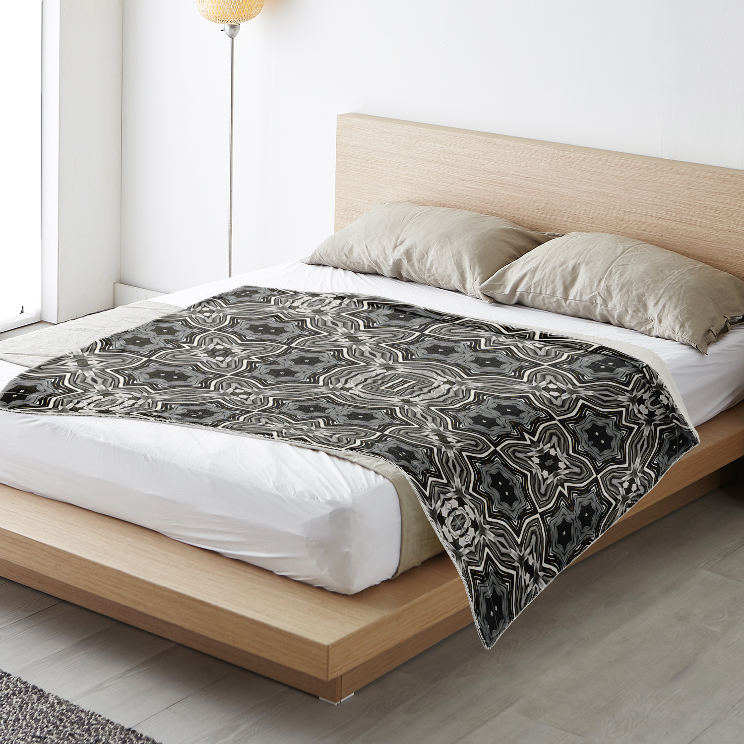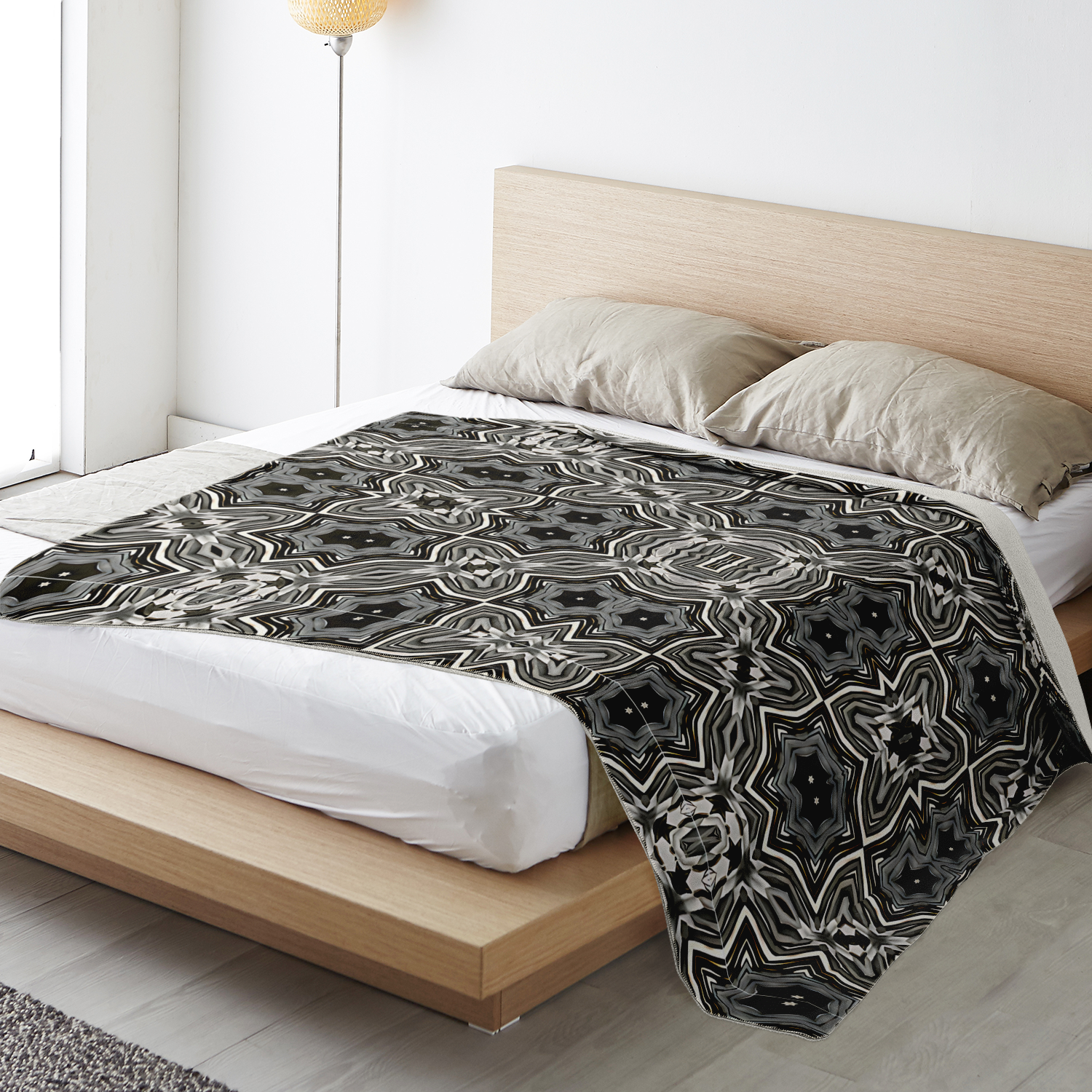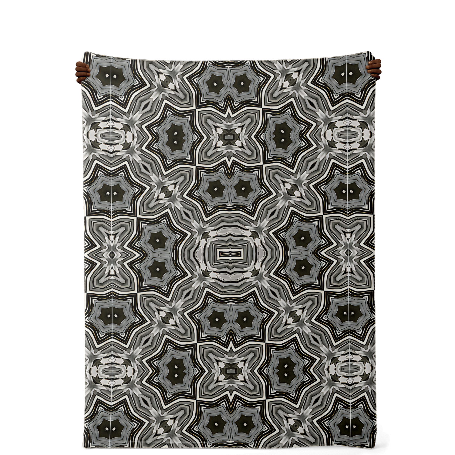 Blanket - Monochrome Kaleidoscope Pattern Premium Microfleece Blanket