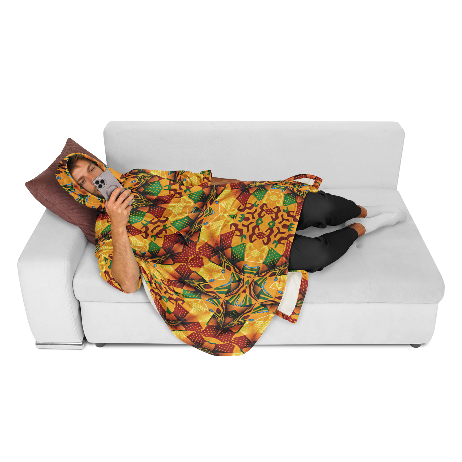 • Features: Front pocket, hood, and sleeves for wearing as a poncho or using as a traditional blanket