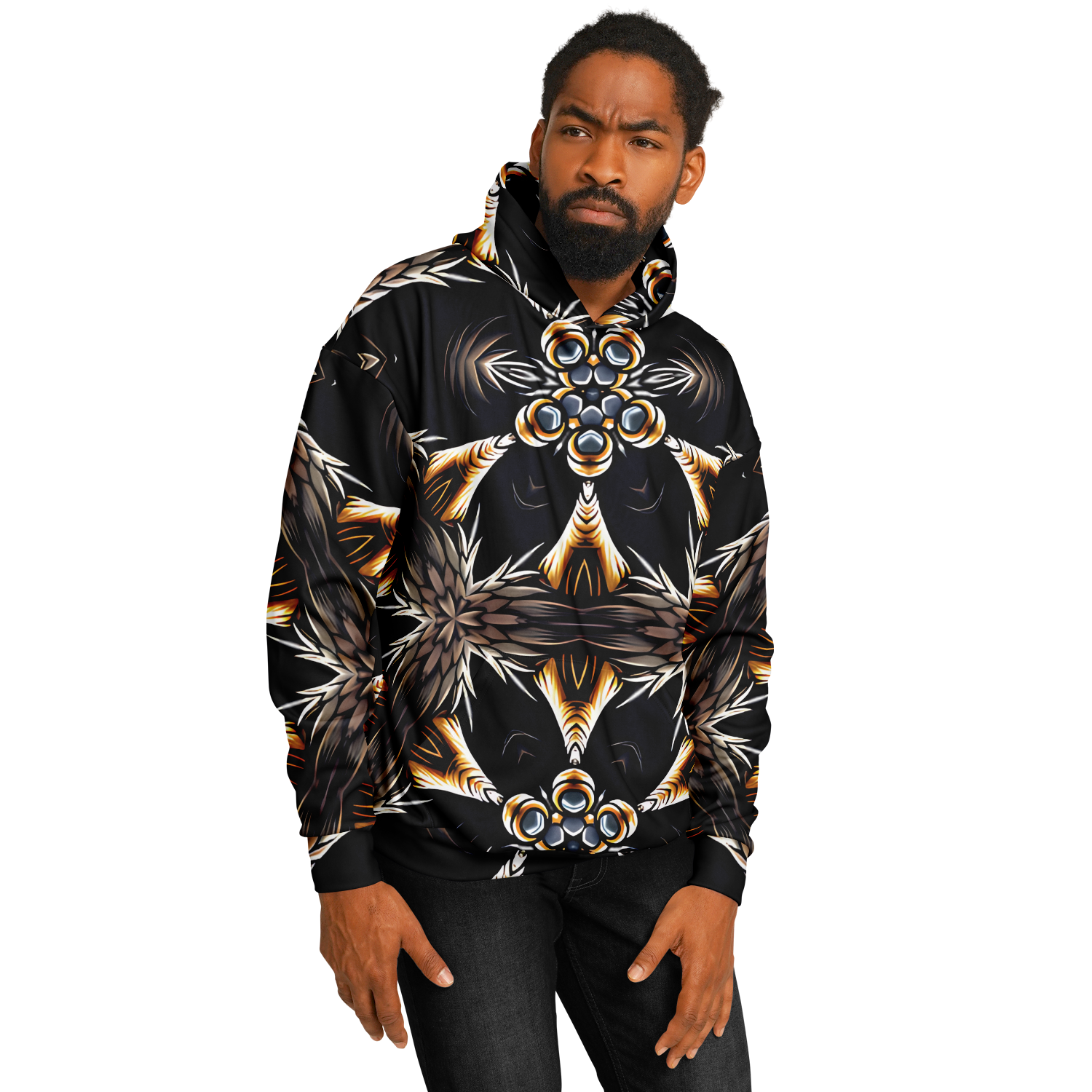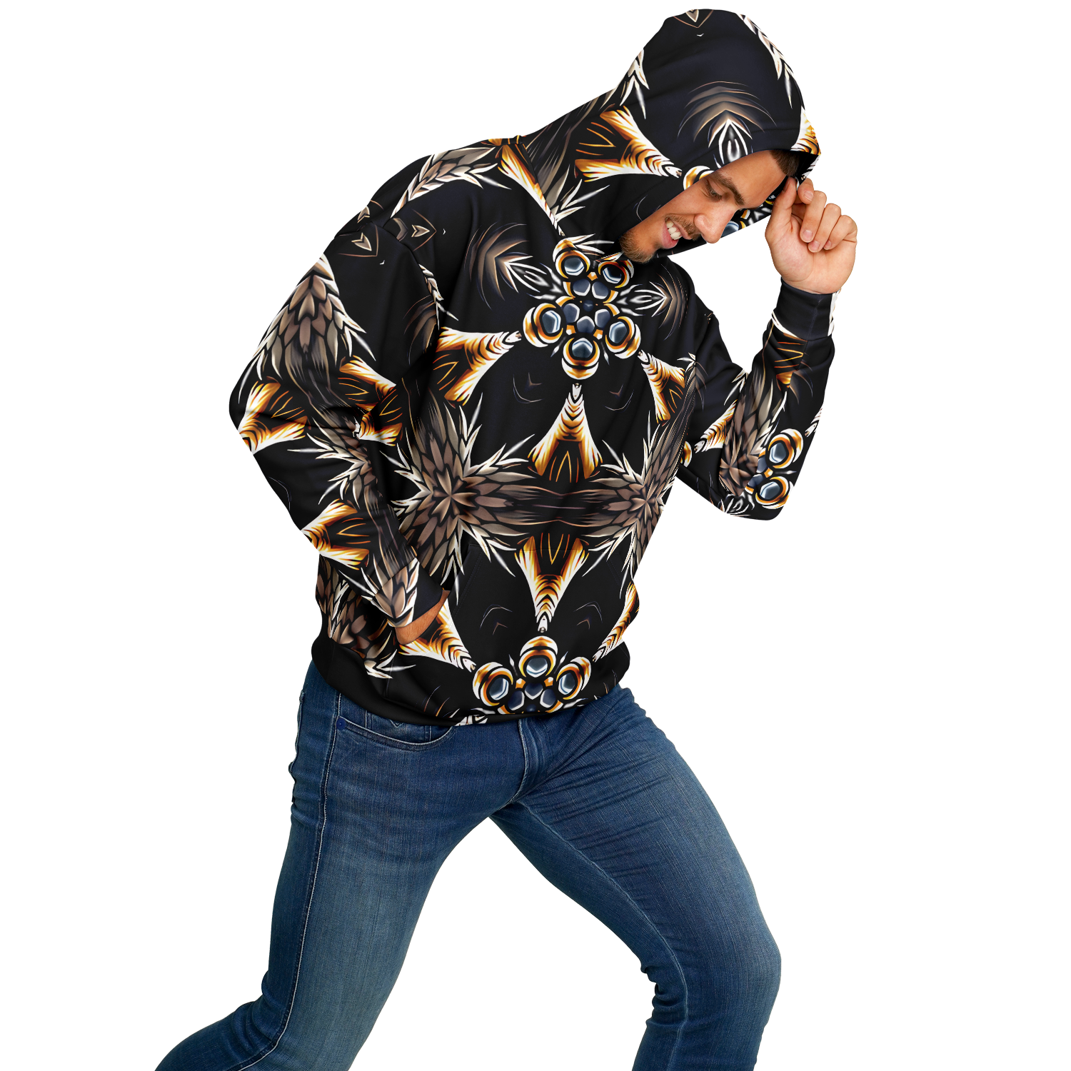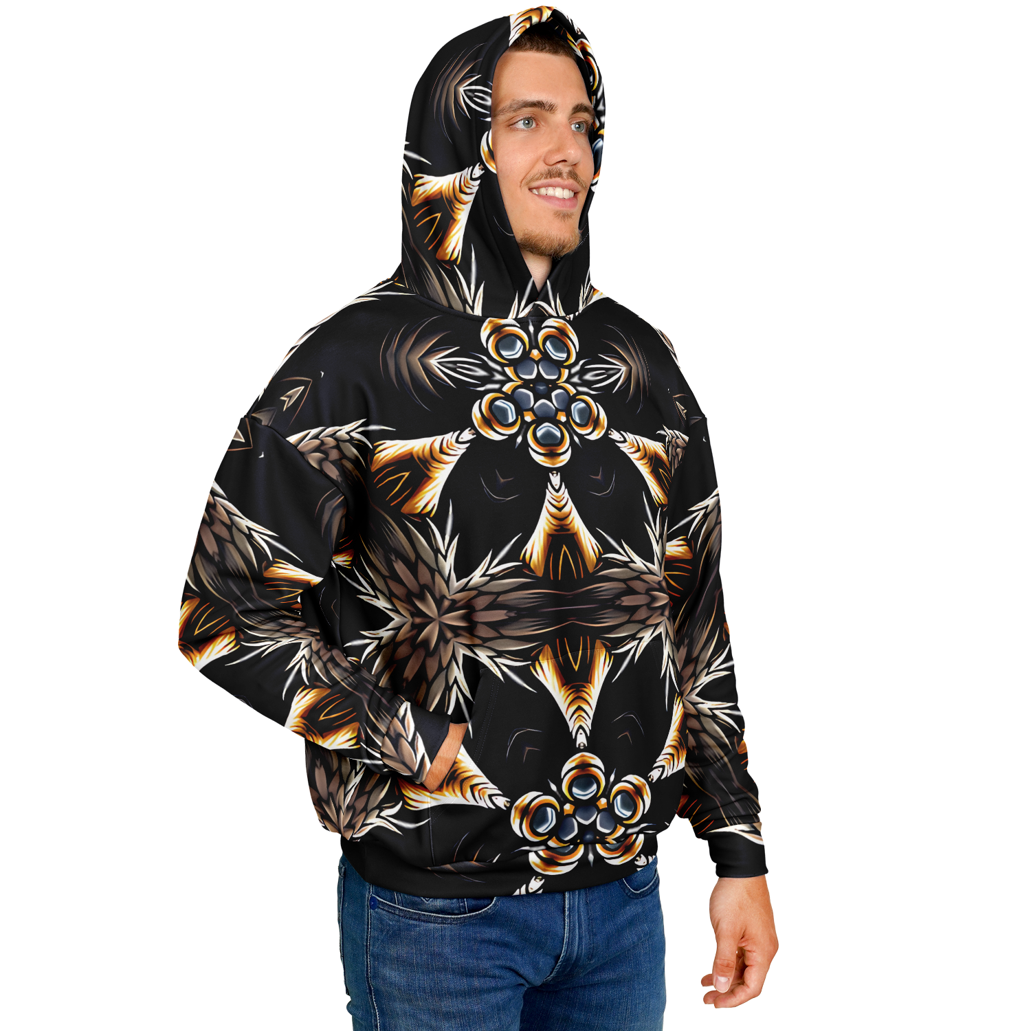 Men's Geometric Black & Gold Kaleidoscope Print Heavyweight Oversized Hoodie