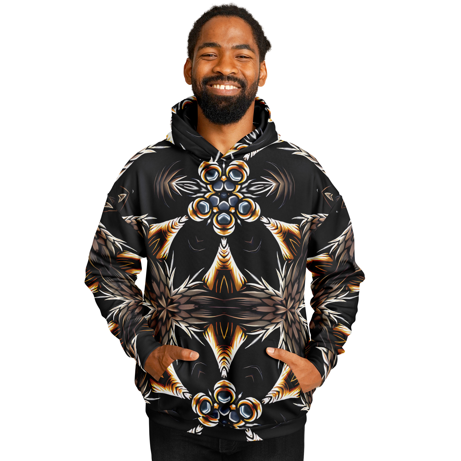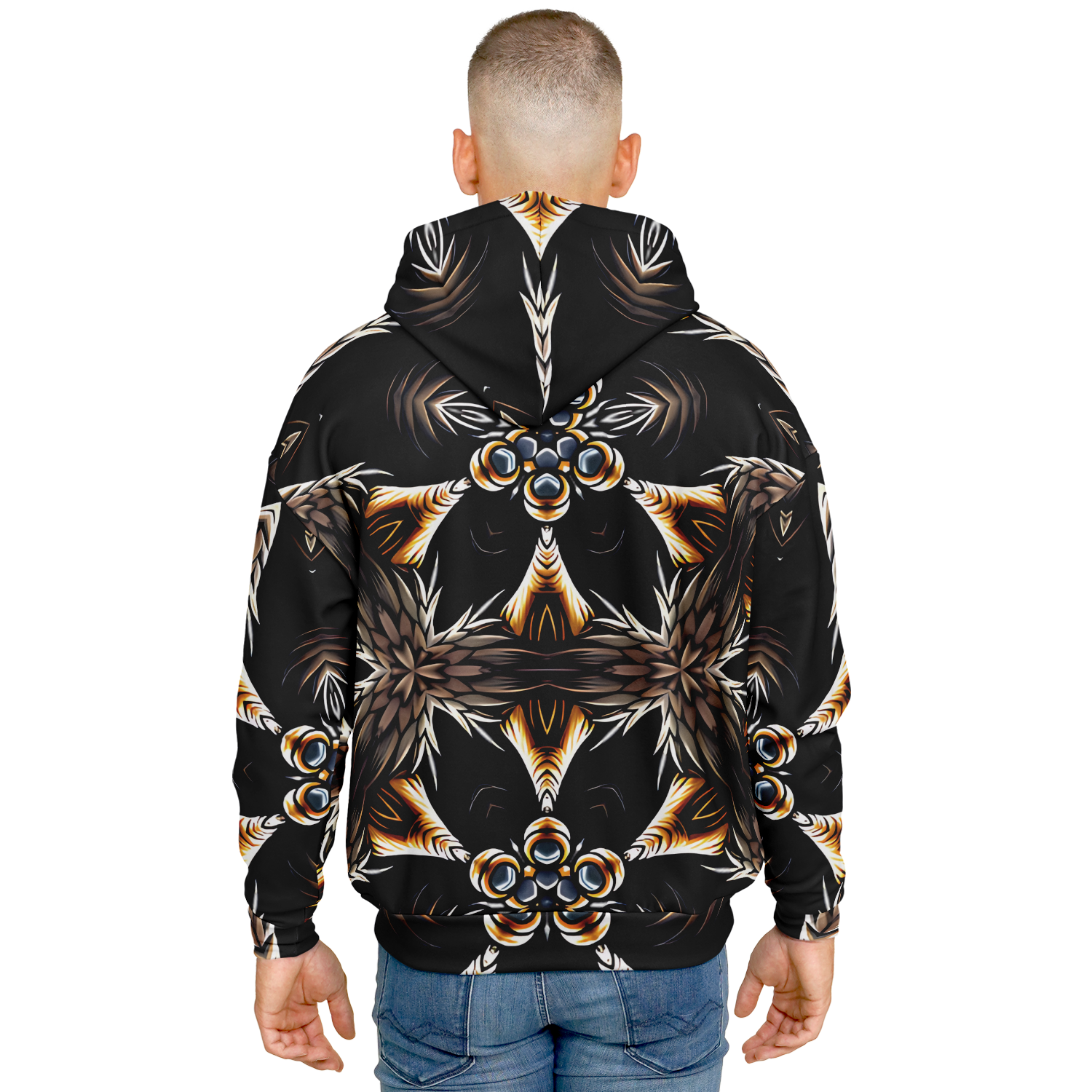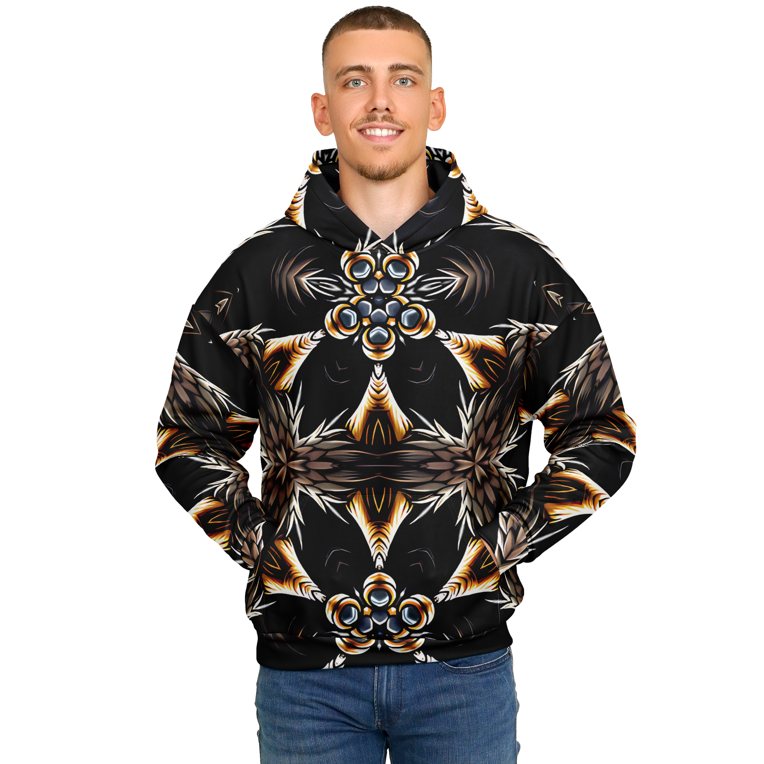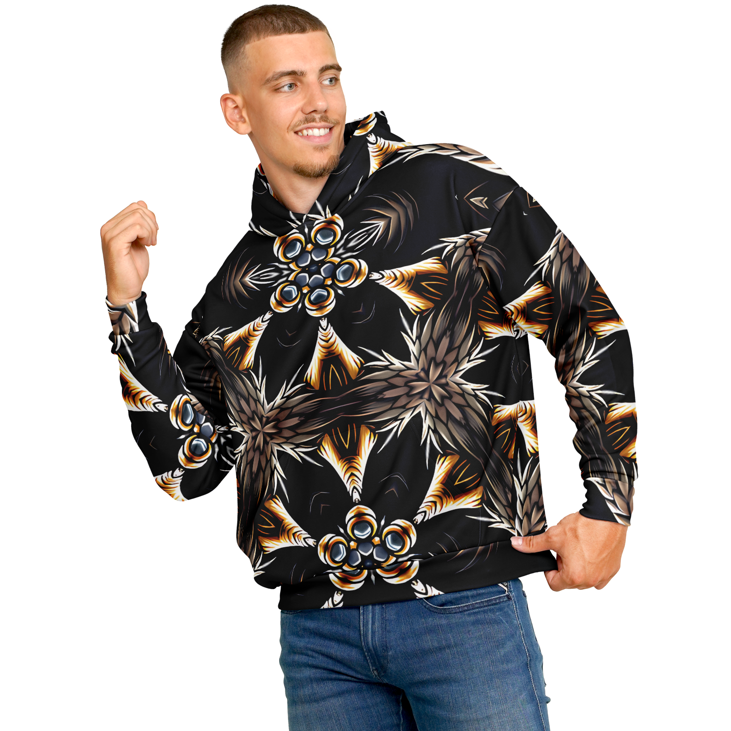 Men's Geometric Black & Gold Kaleidoscope Print Heavyweight Oversized Hoodie