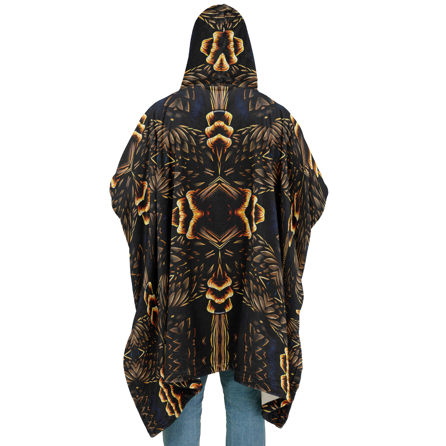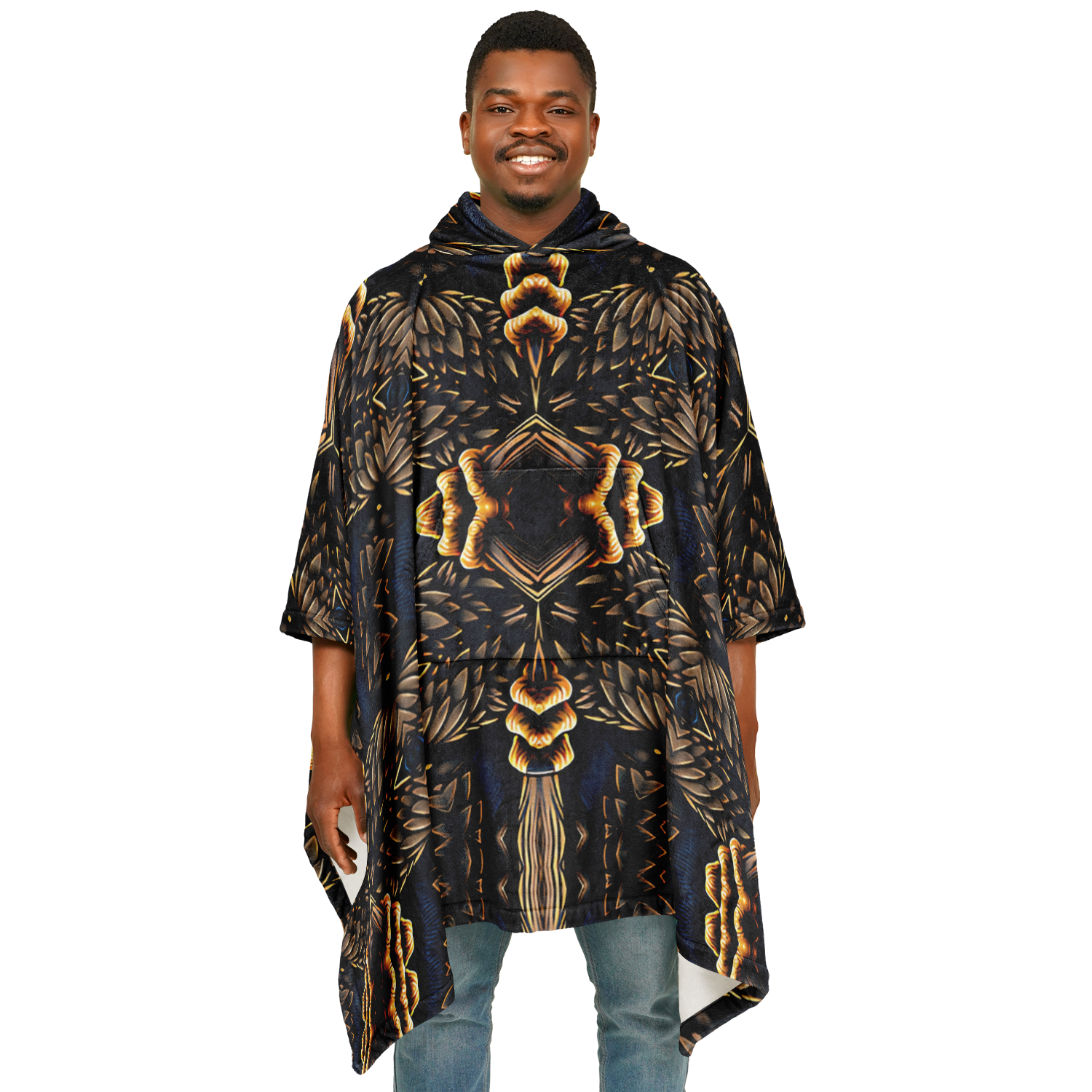 Men's Geometric Gold & Black Pattern Flannel Blanket Poncho