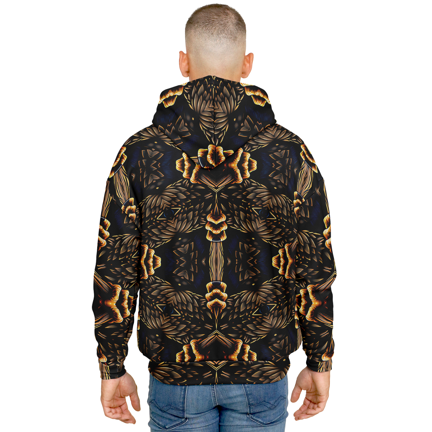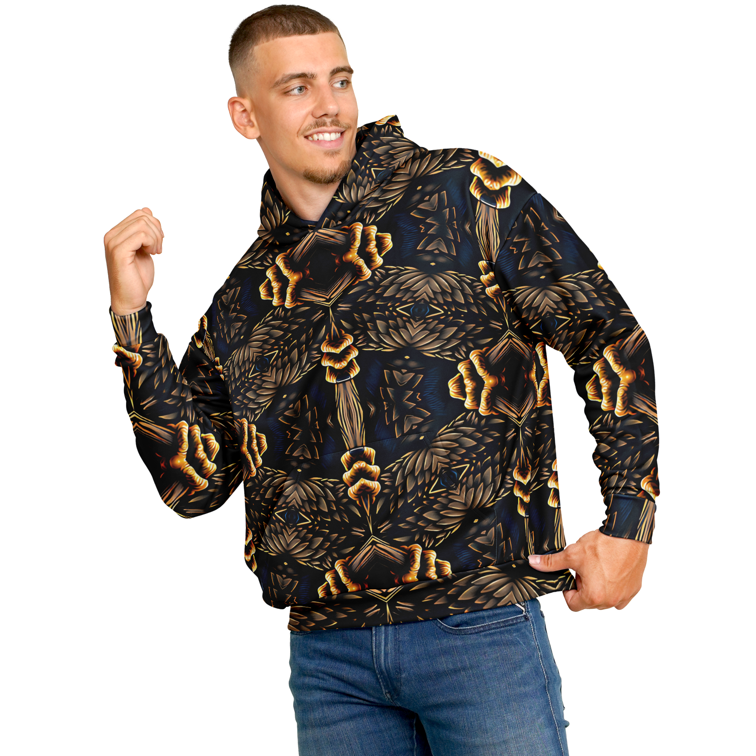 Men's Geometric Gold & Black Pattern Heavyweight Oversized Hoodie