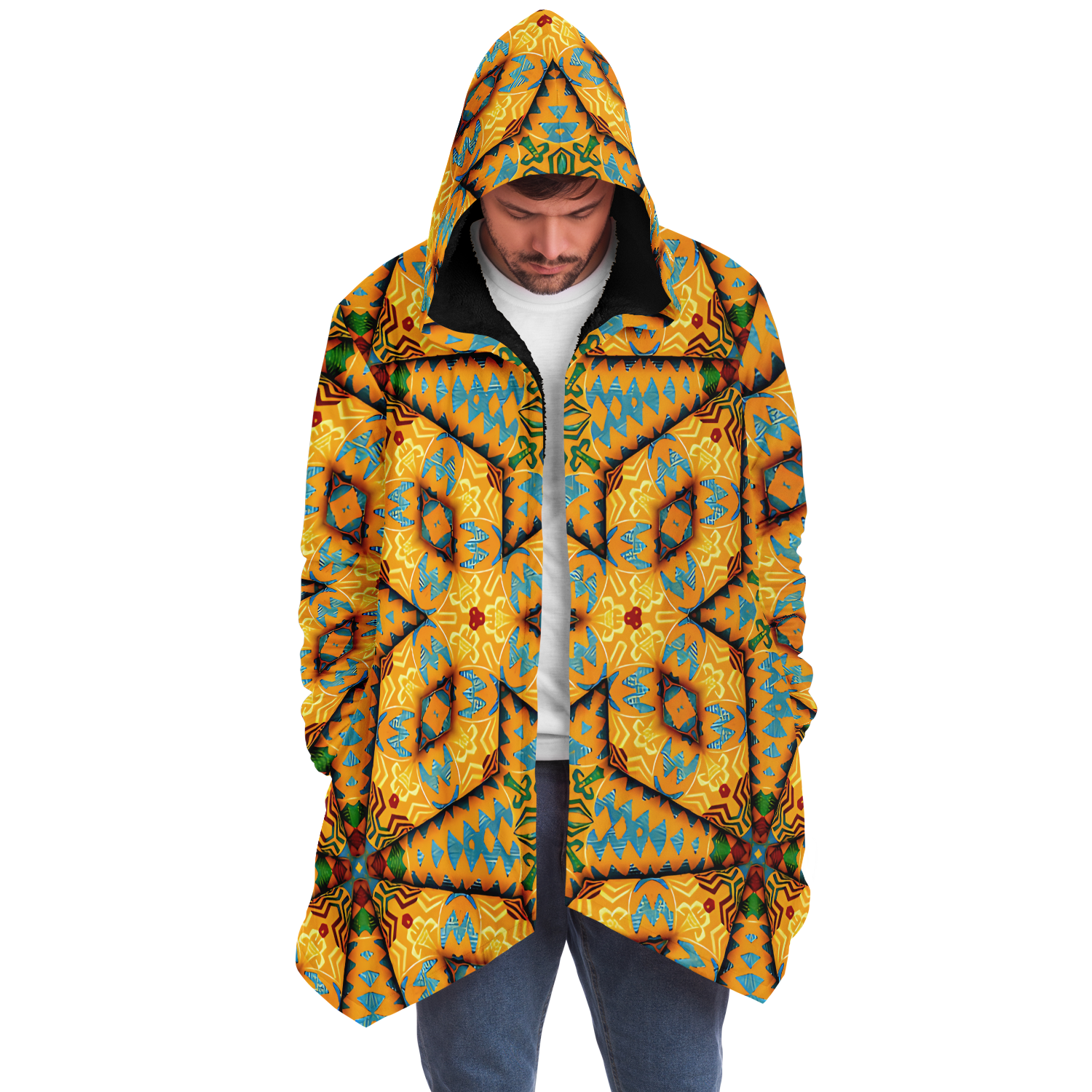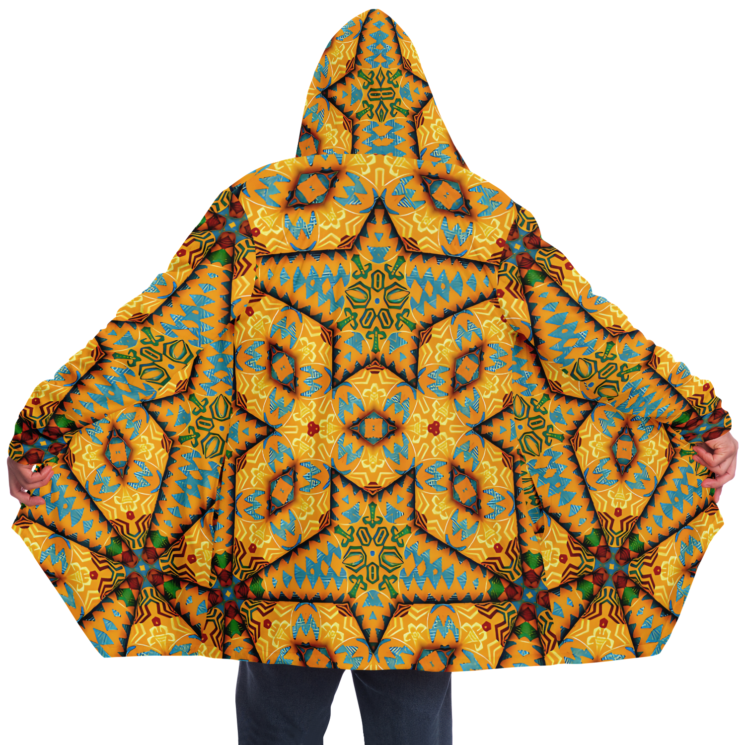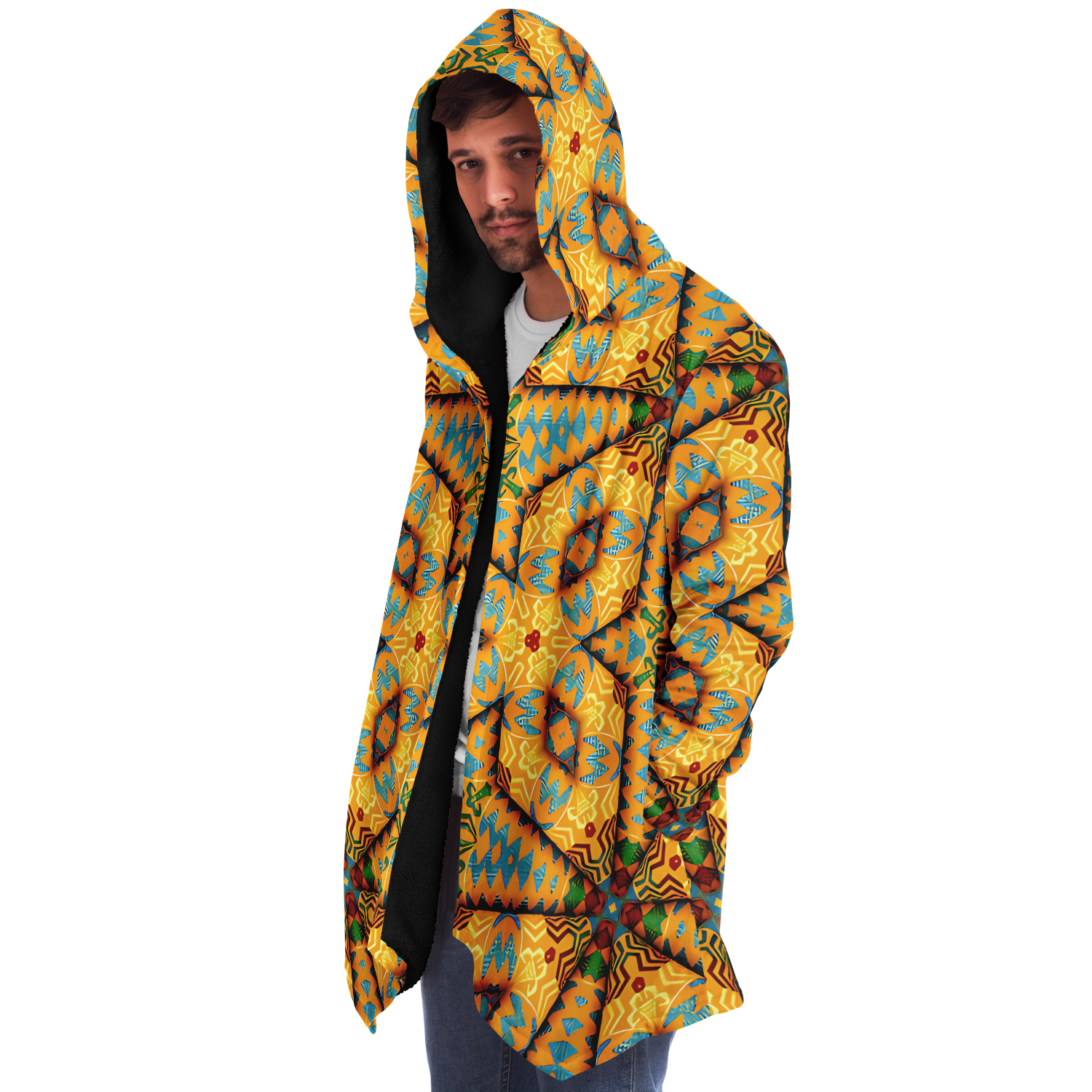 Men's Golden Geometric Mosaic Pattern Microfleece Cloak