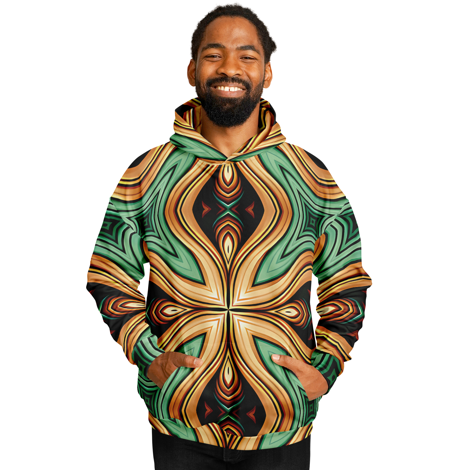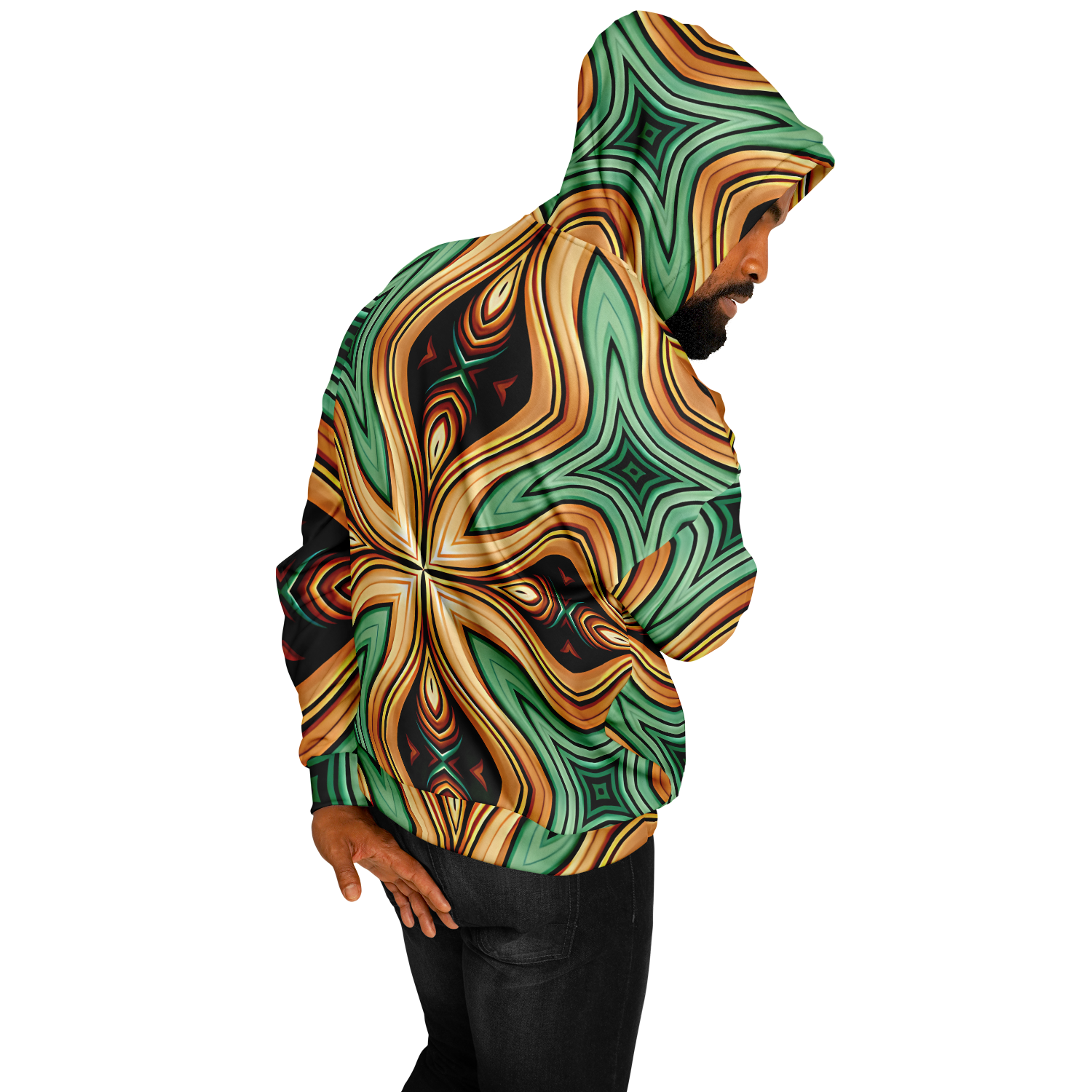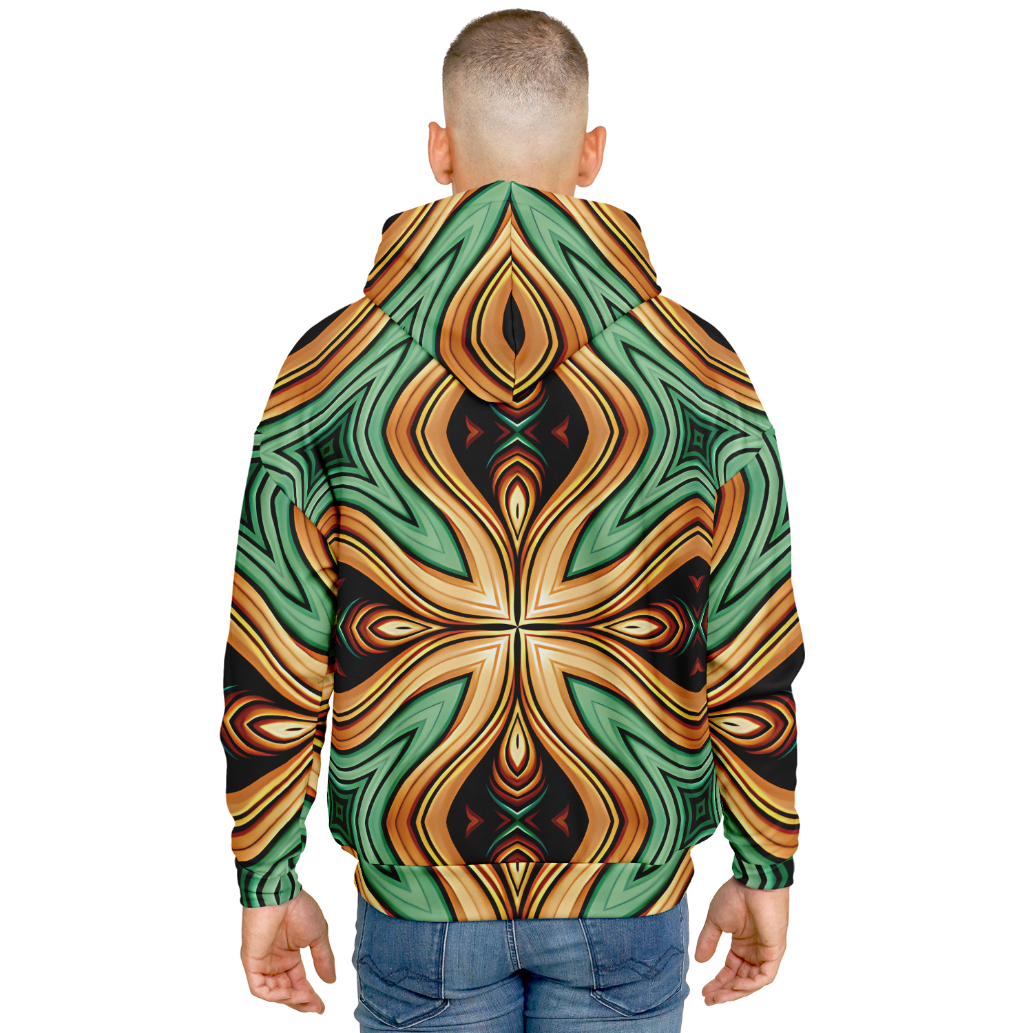 Men's Green & Gold Retro Kaleidoscope Pattern Heavyweight Oversized Hoodie