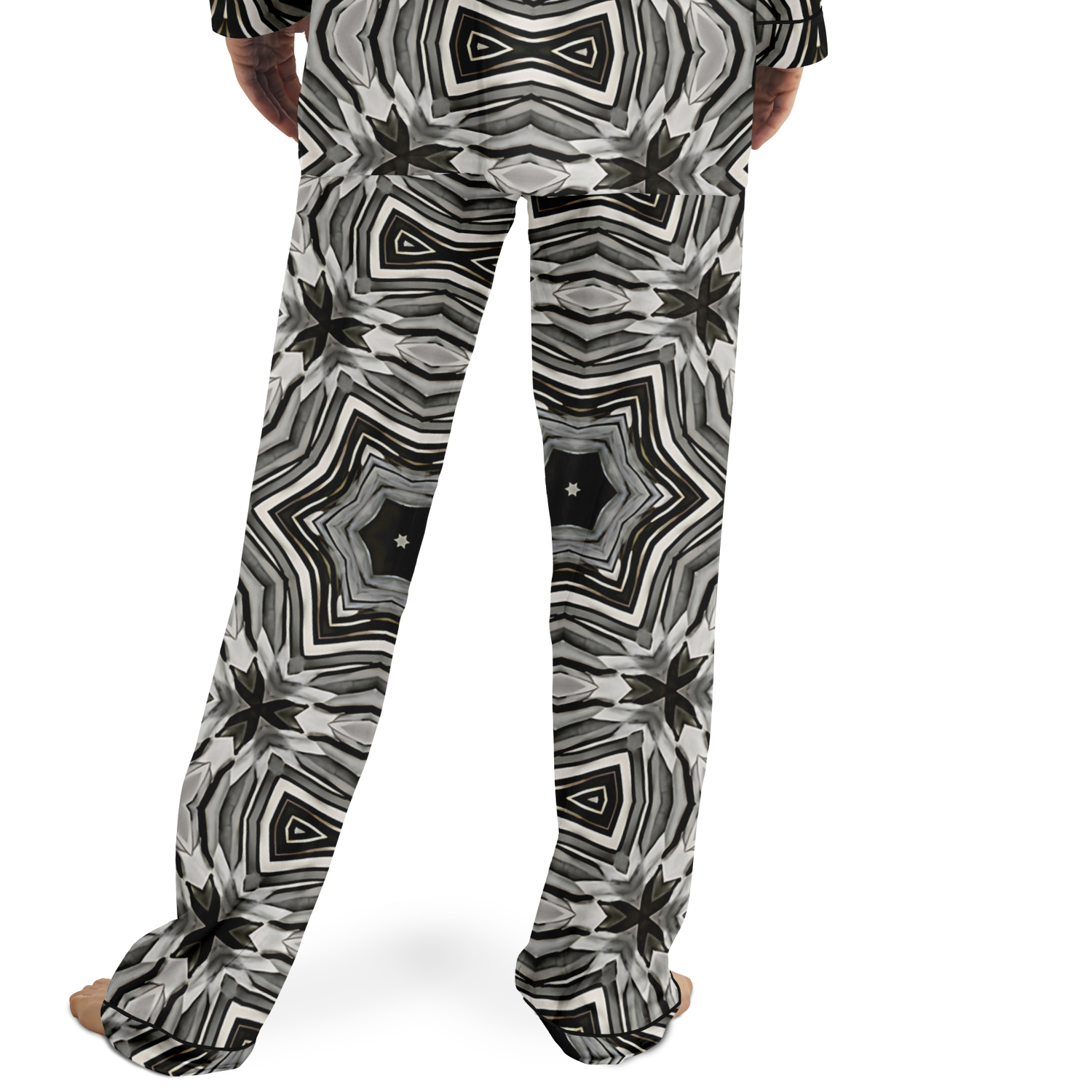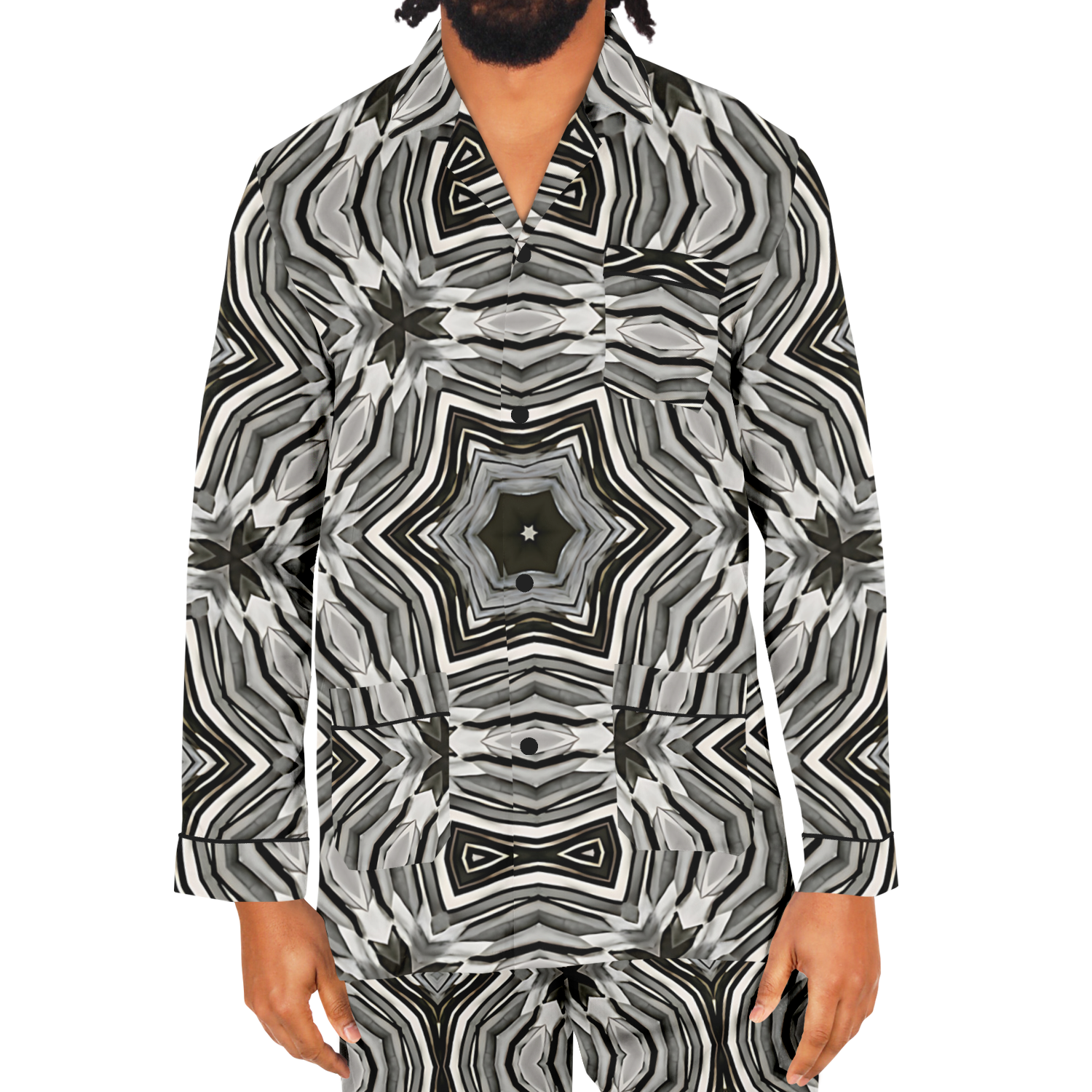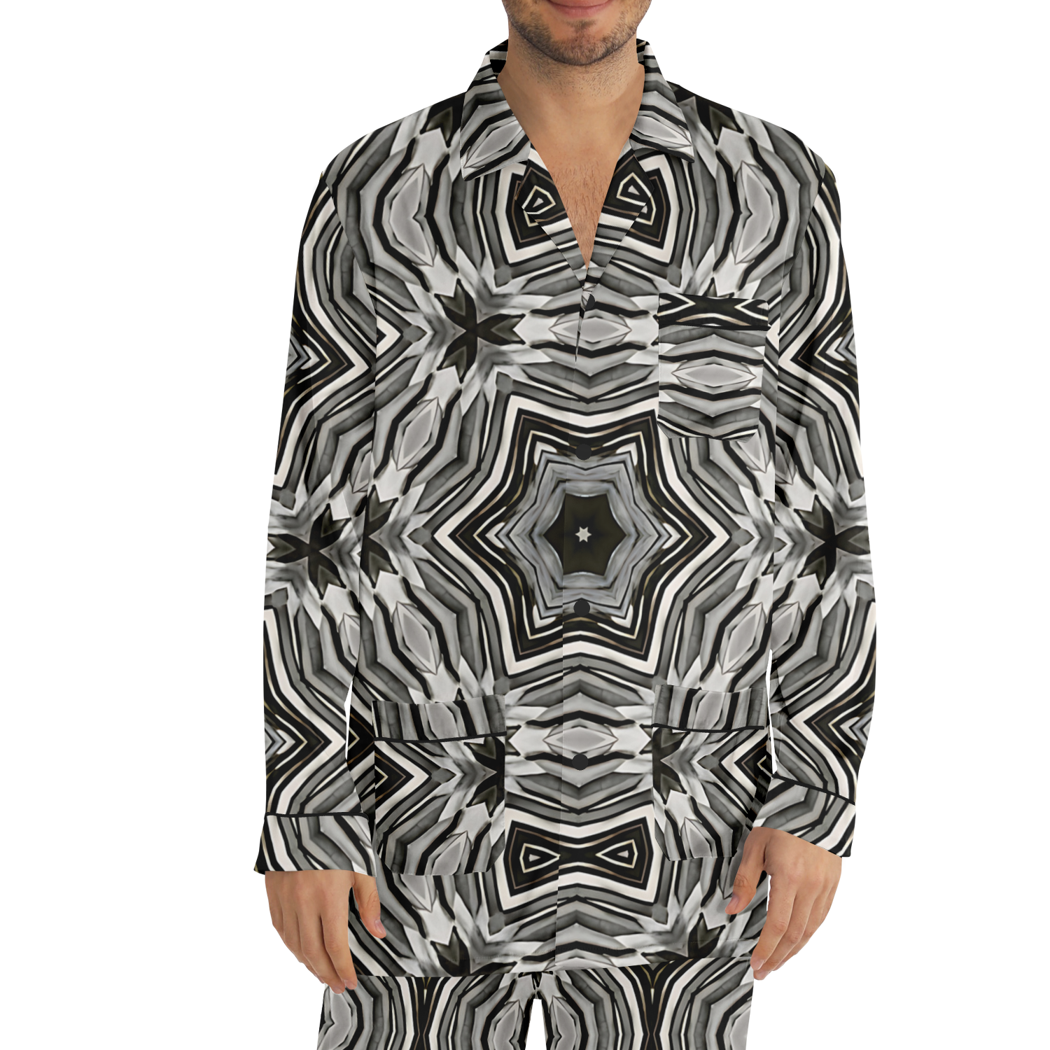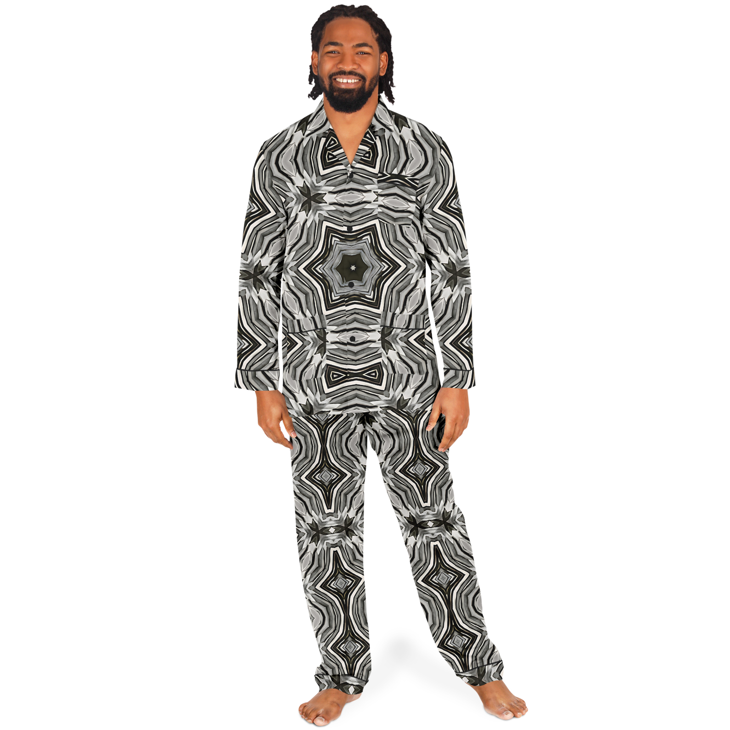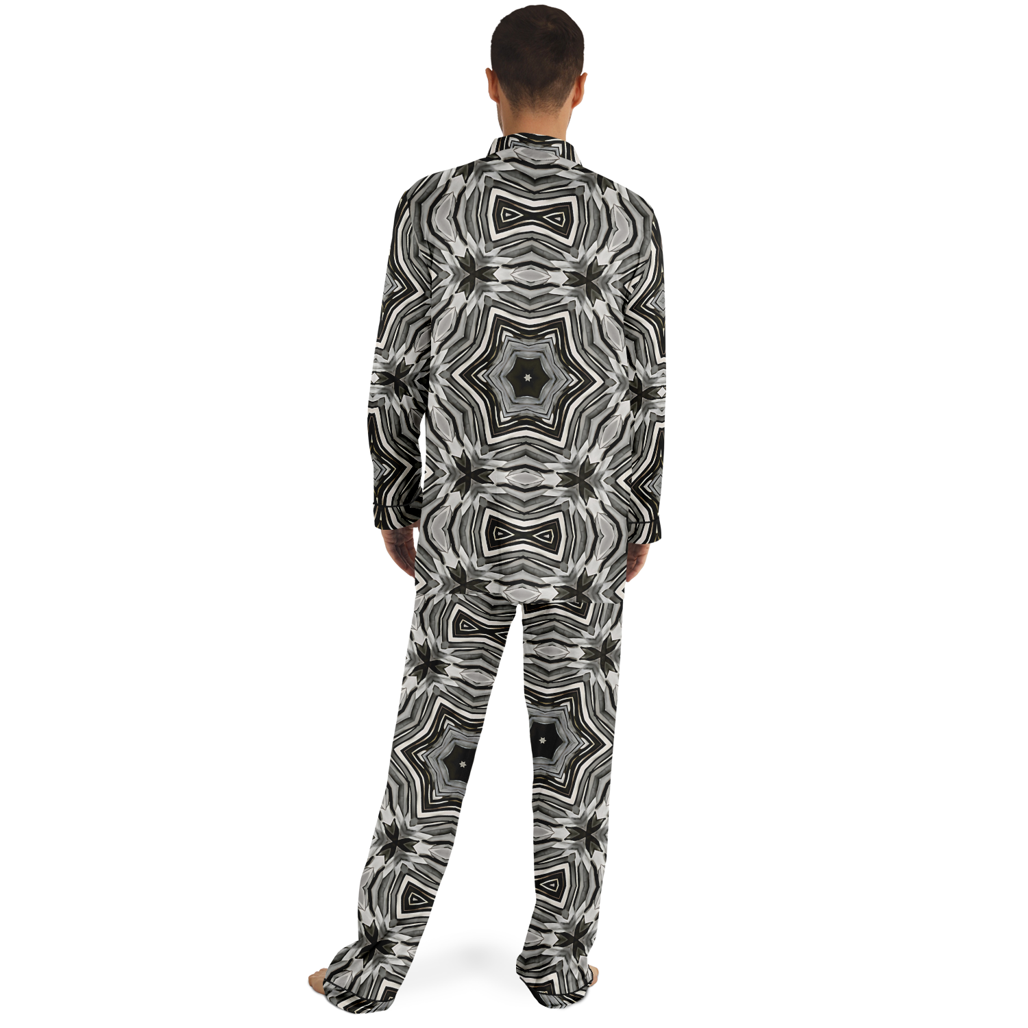 Men's Monochrome Kaleidoscope Pattern Satin Pajamas