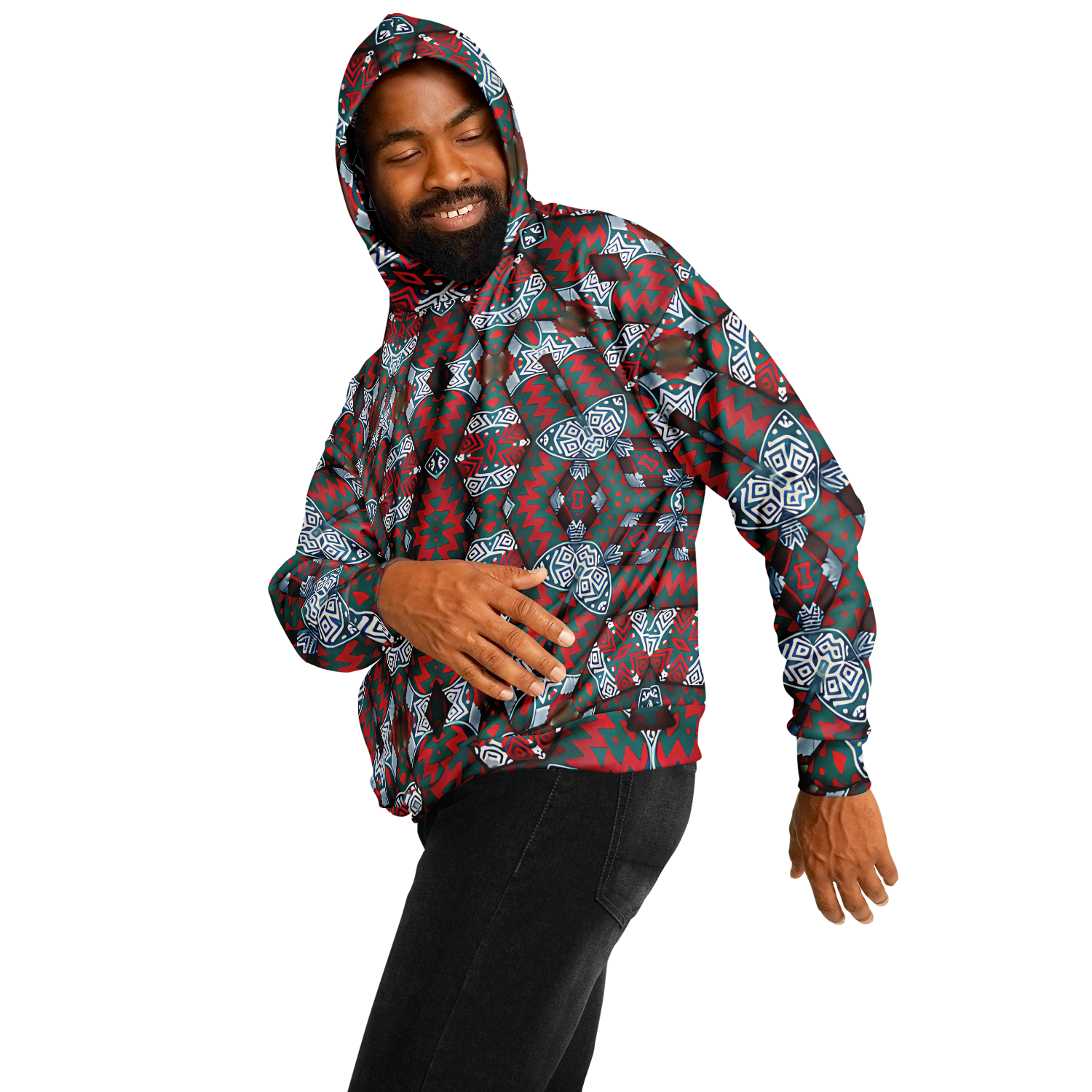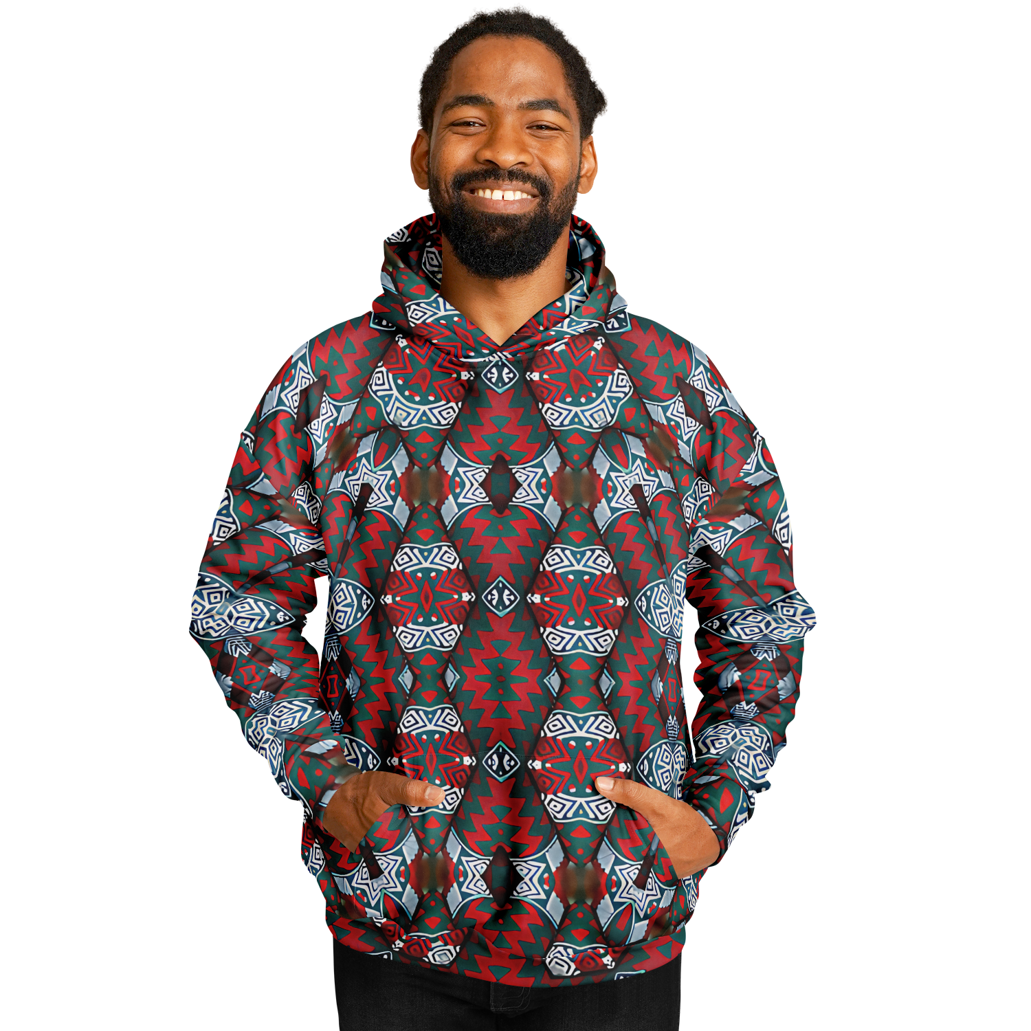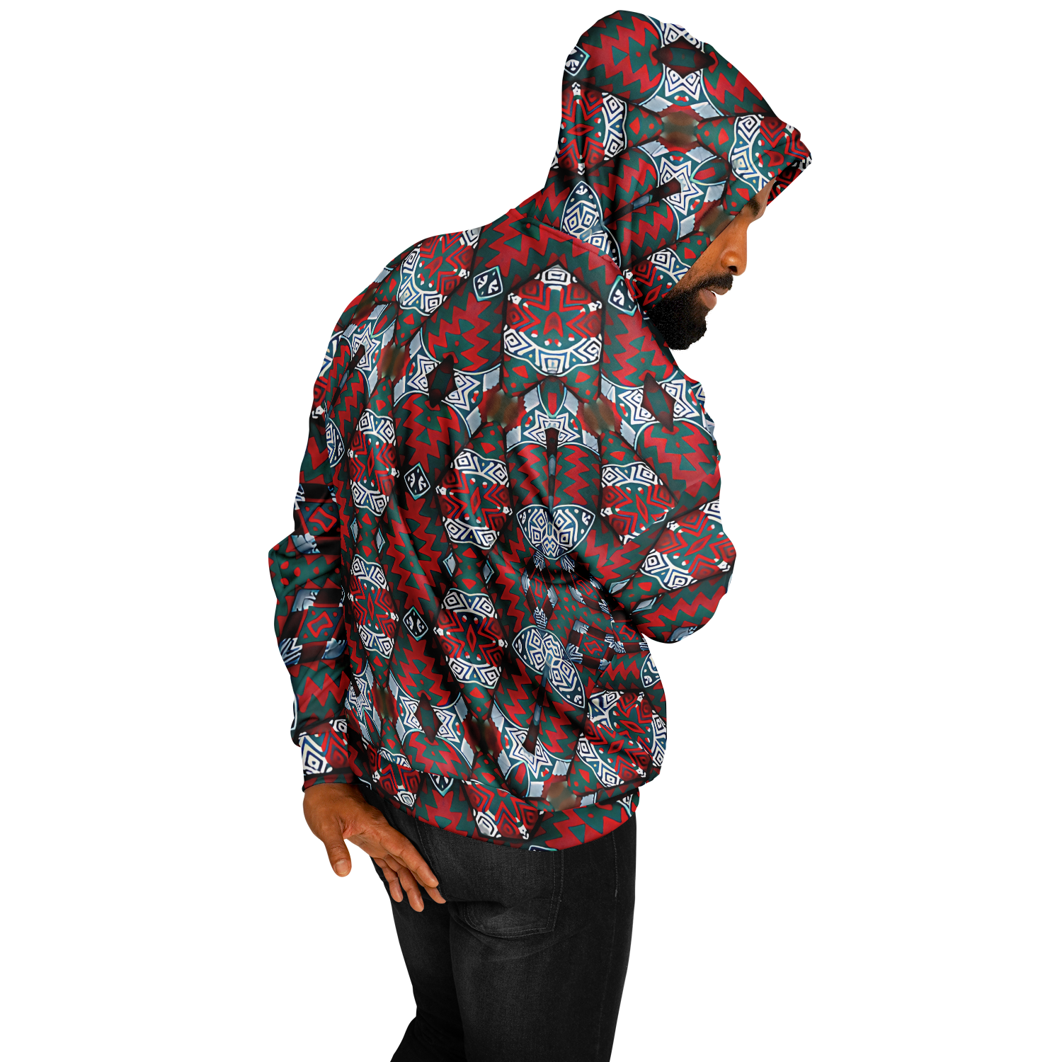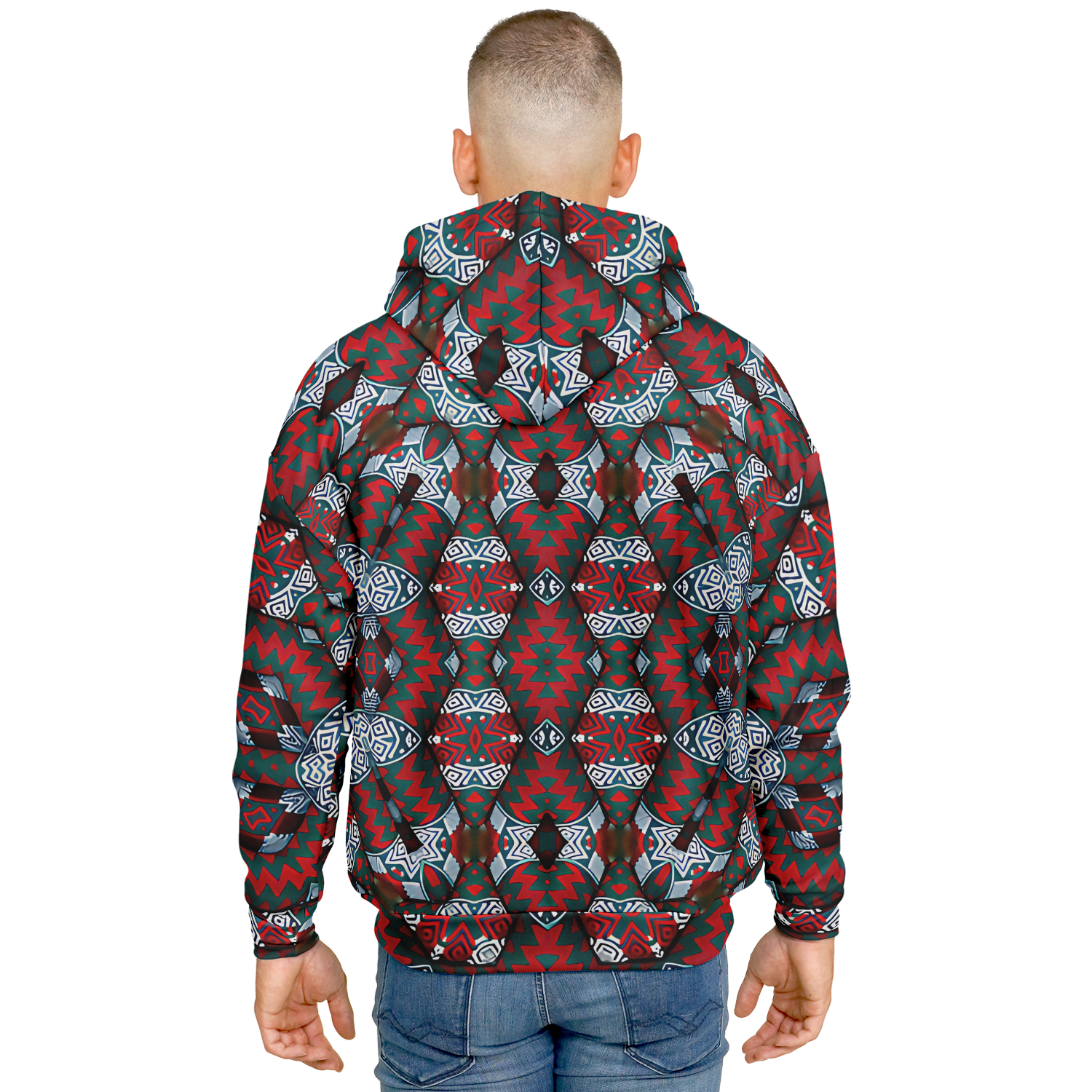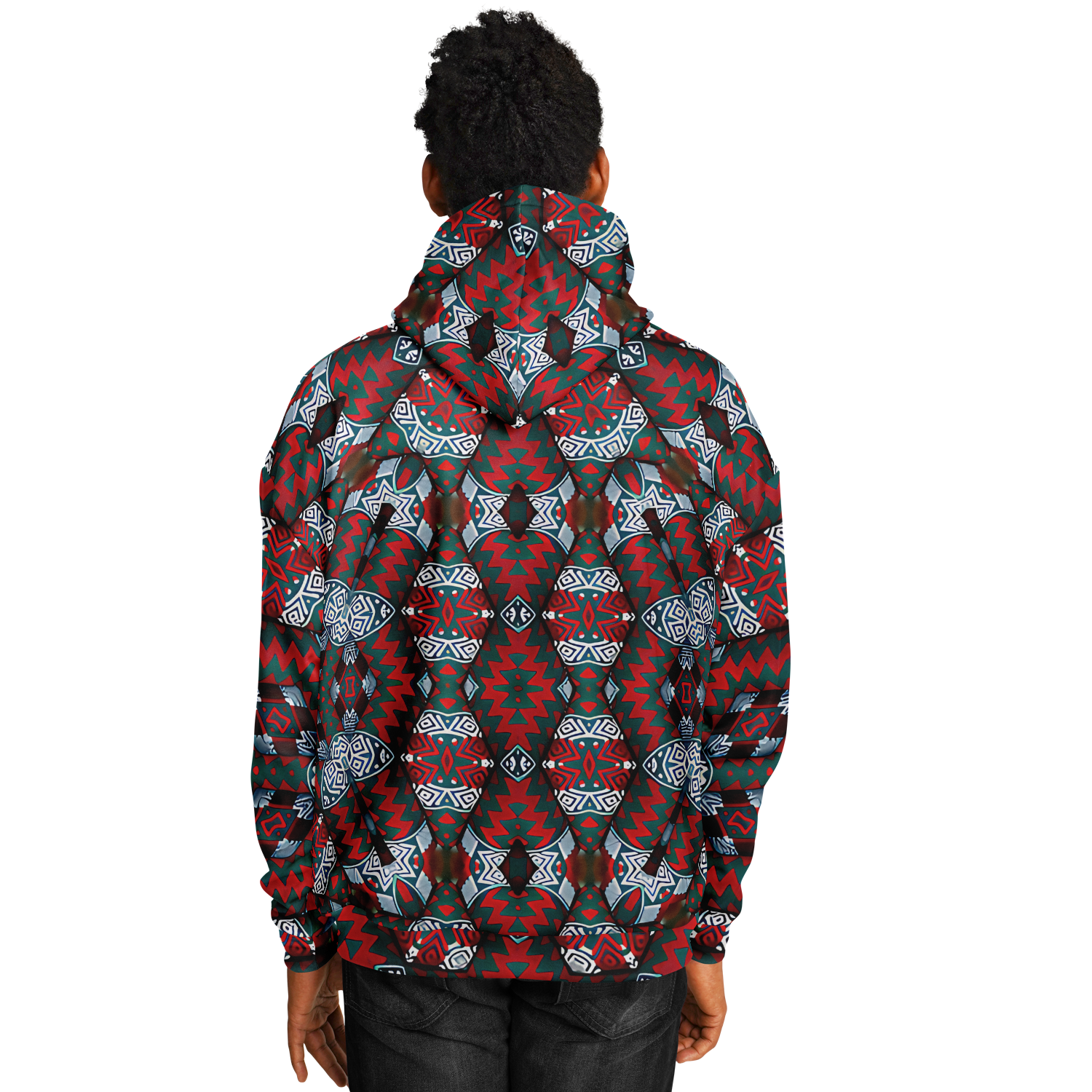 Men's Red & Teal Geometric Pattern Heavyweight Oversized Hoodie