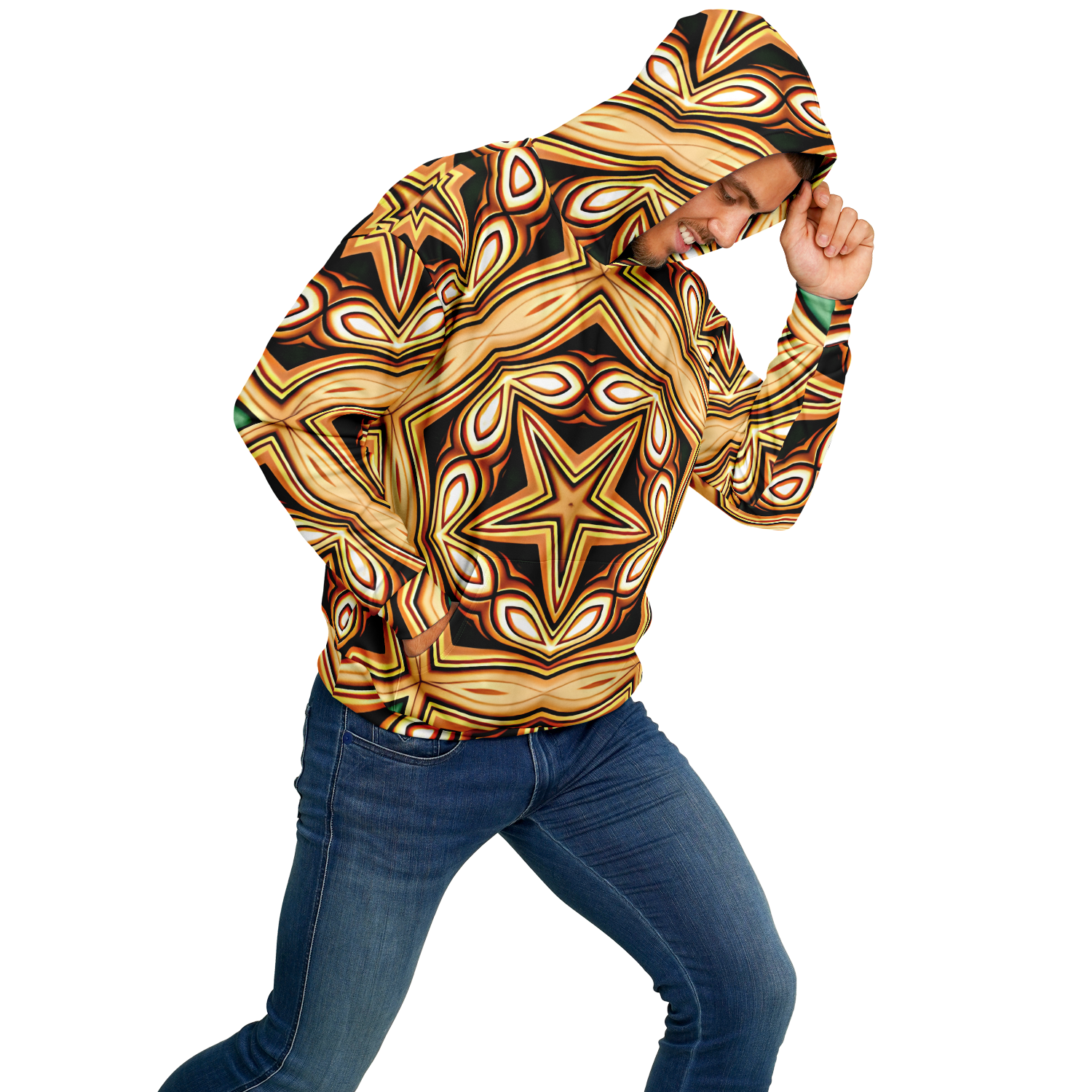 Men's Retro Geometric Brown & Teal Pattern Heavyweight Oversized Hoodie