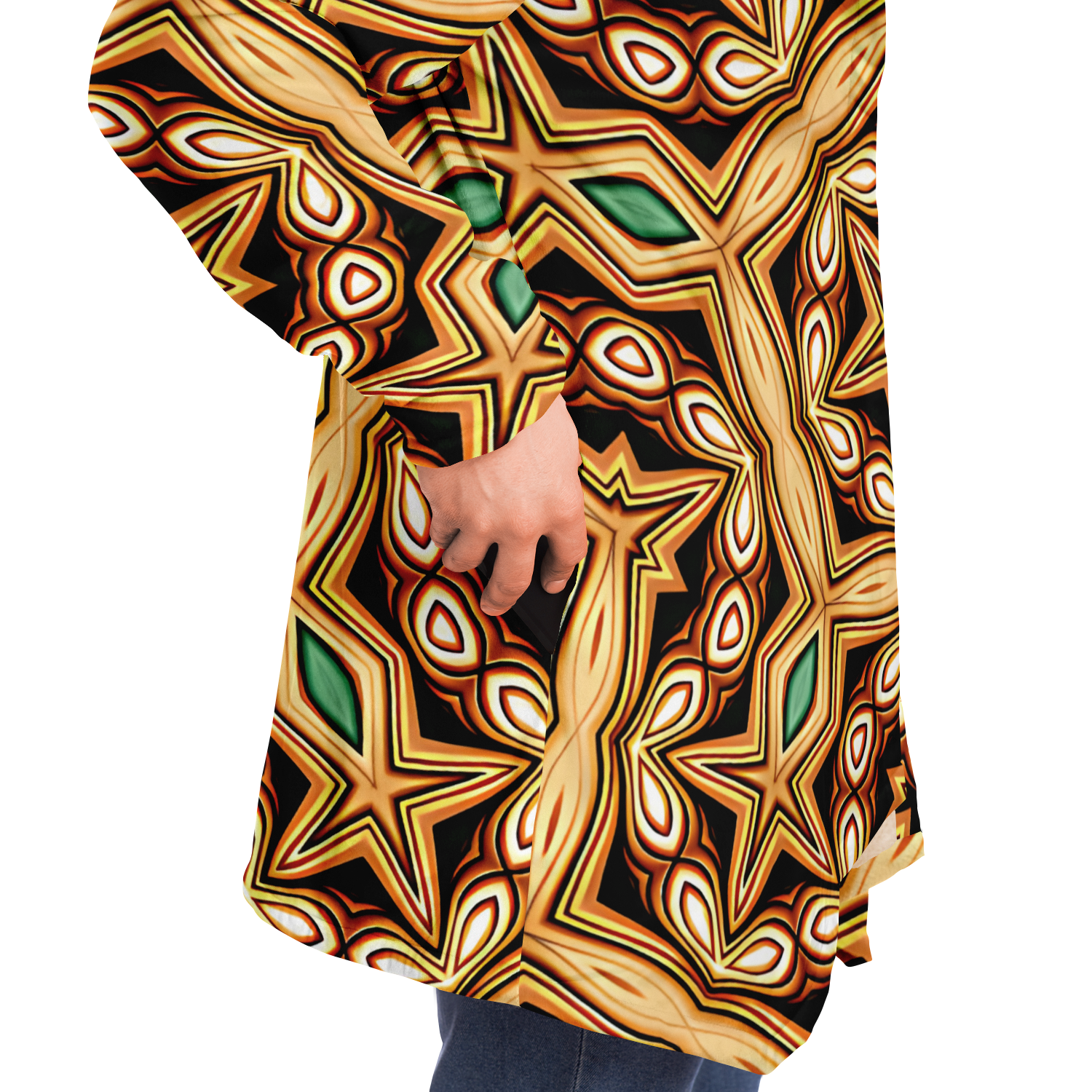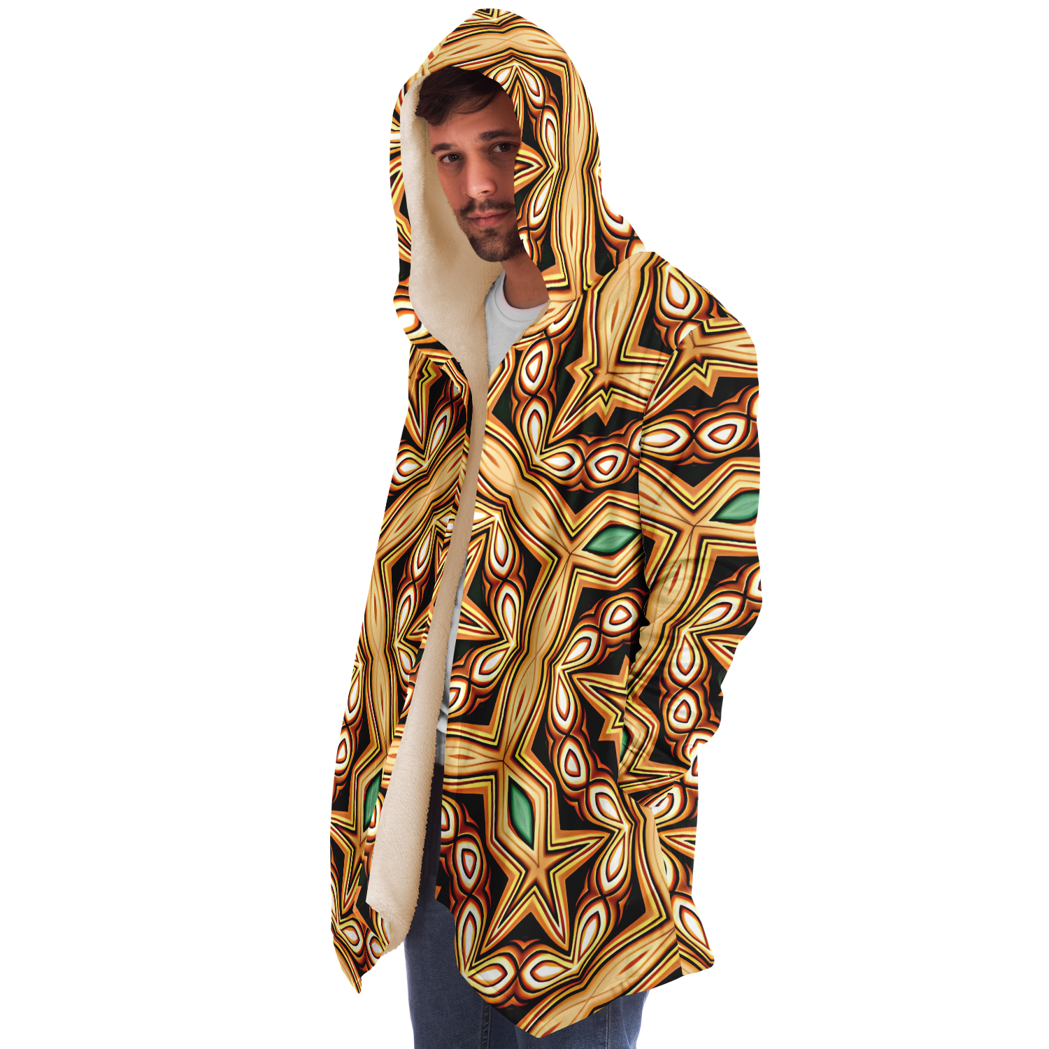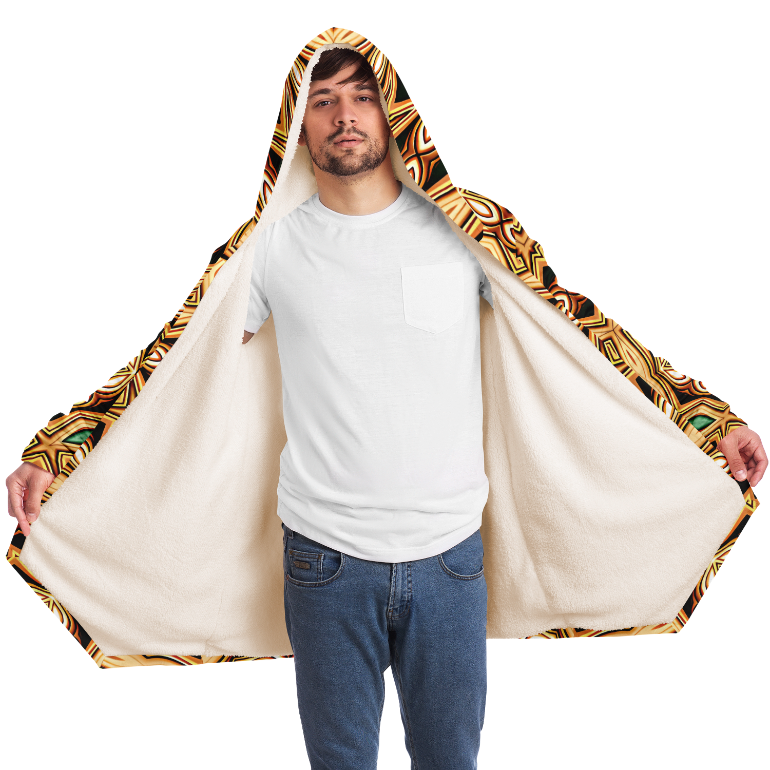This luxurious cloak is made from an ultra-soft premium microfiber fleece lining. The outside is made with a micro-mink polyester fabric that allows the print to be high definition with vibrant colors. Featuring two deep side pockets to keep your belongings safe and your hands warm.