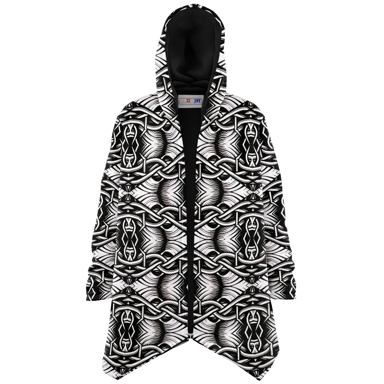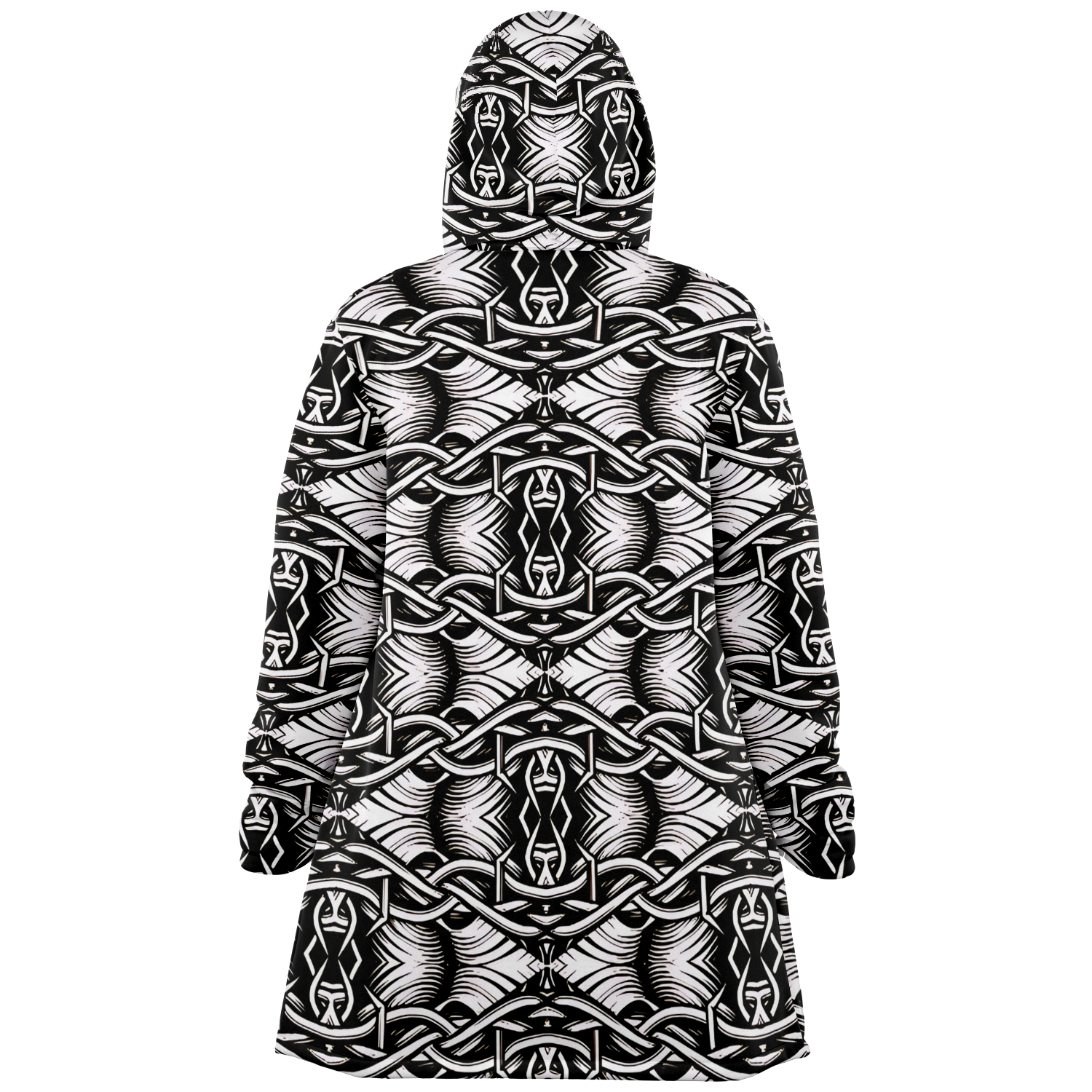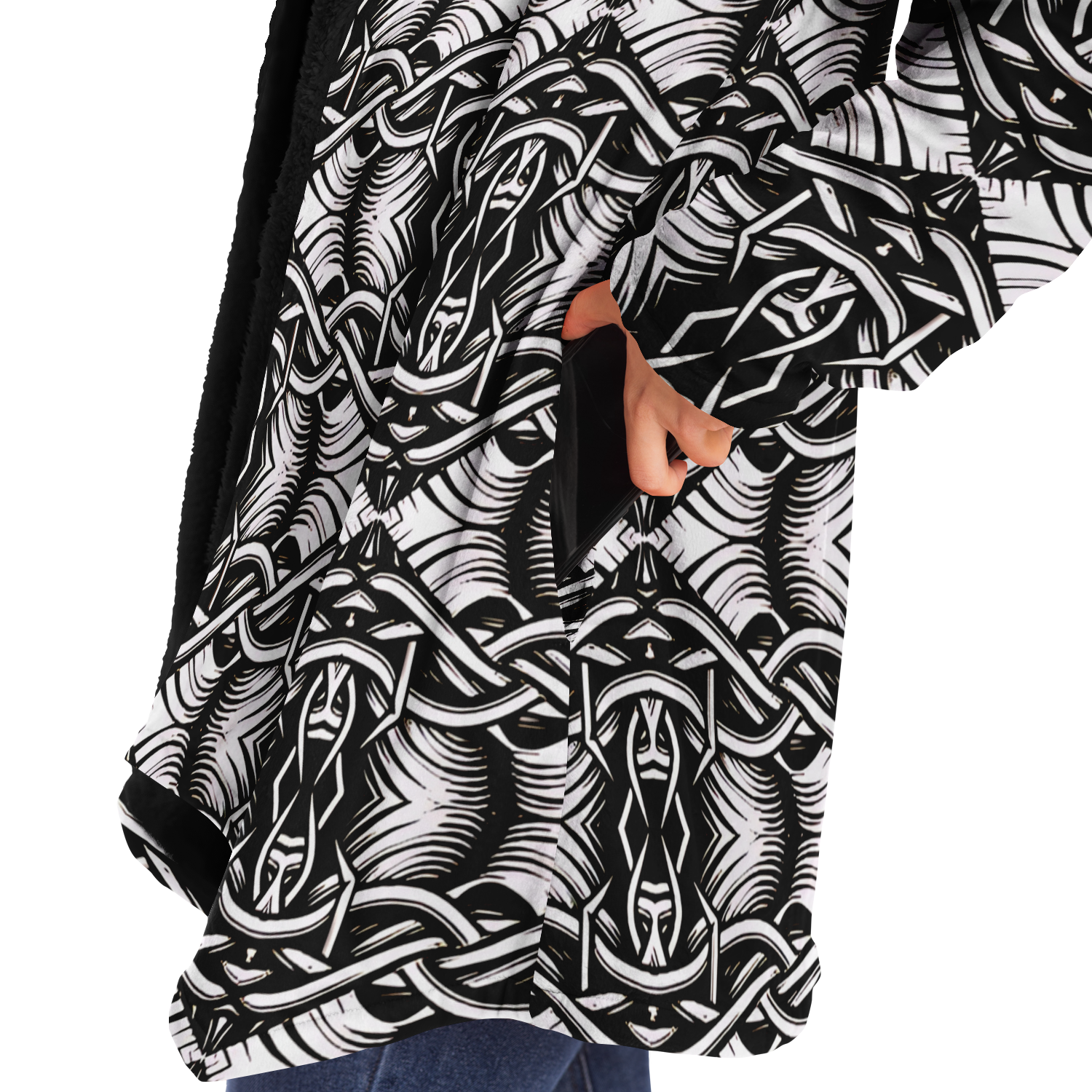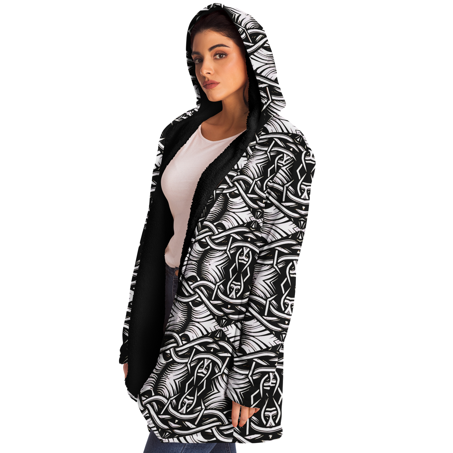 Women’s Black Intricate Silver Chain Tattoo Pattern High Microfleece Cloak
