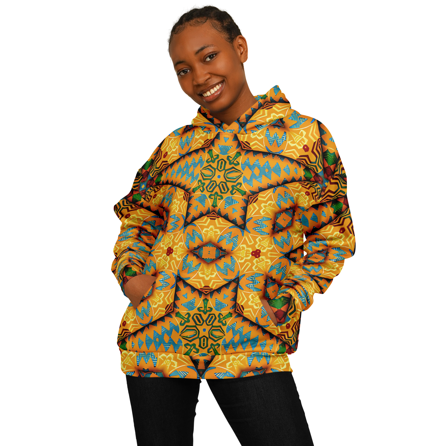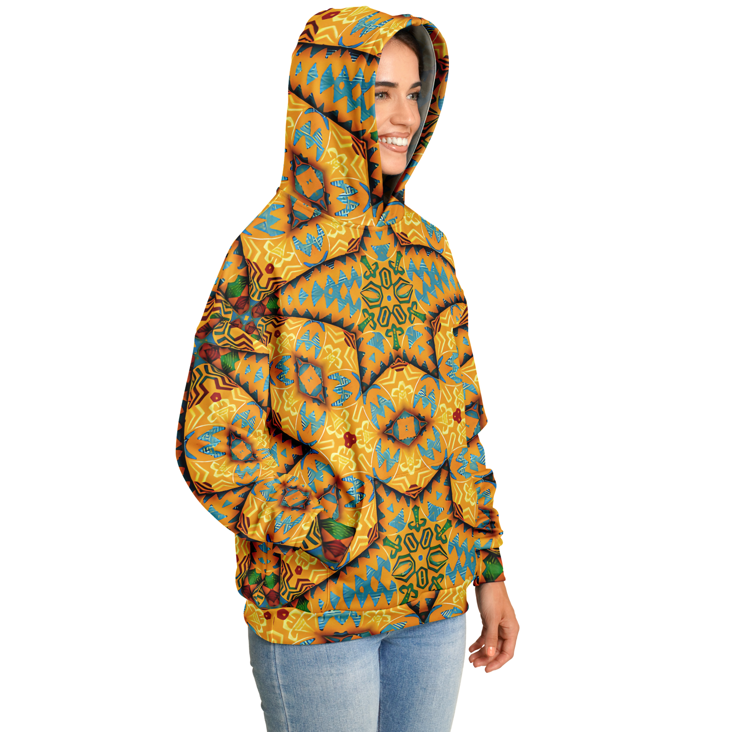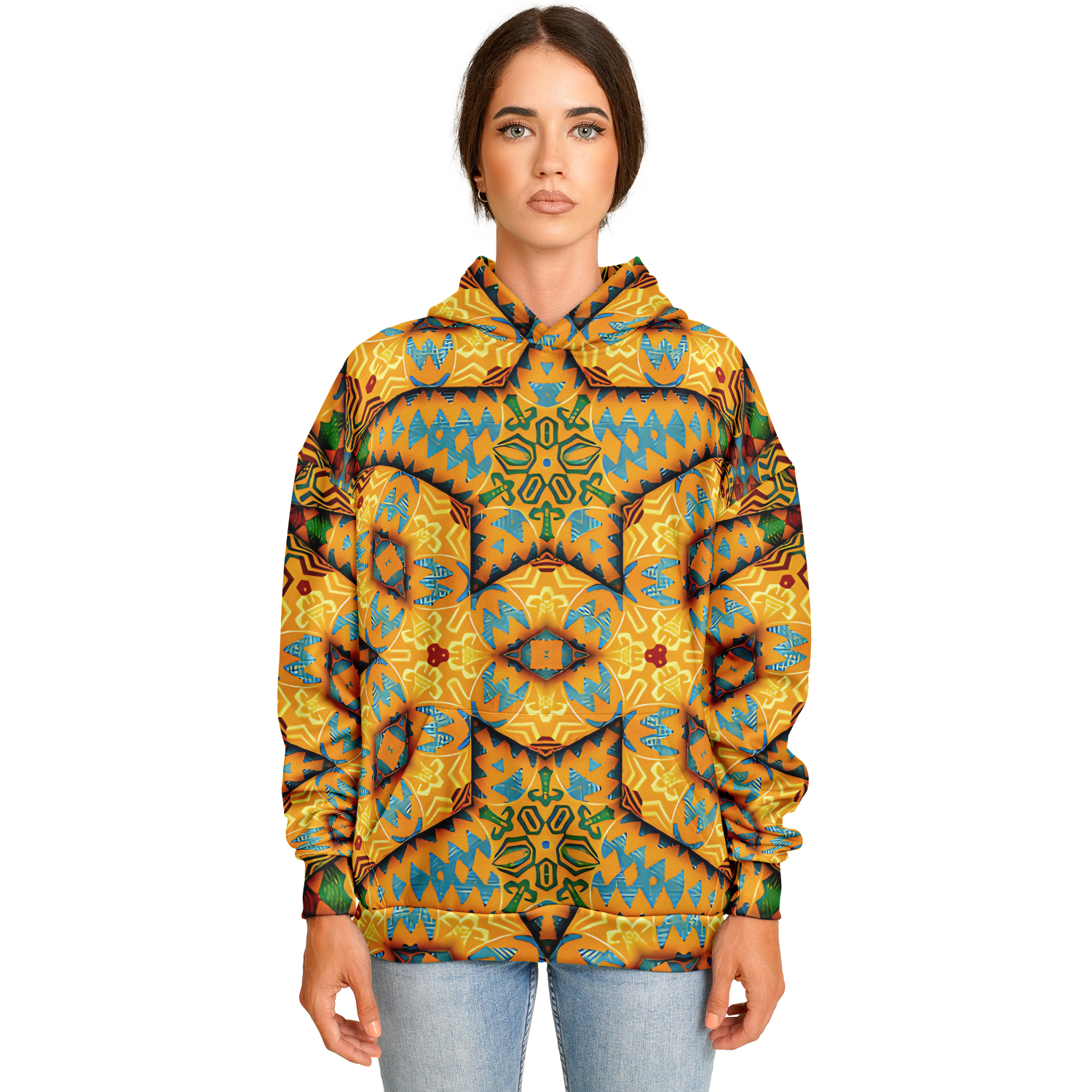 Women's Golden Geometric Mosaic Pattern Heavyweight Oversized Hoodie