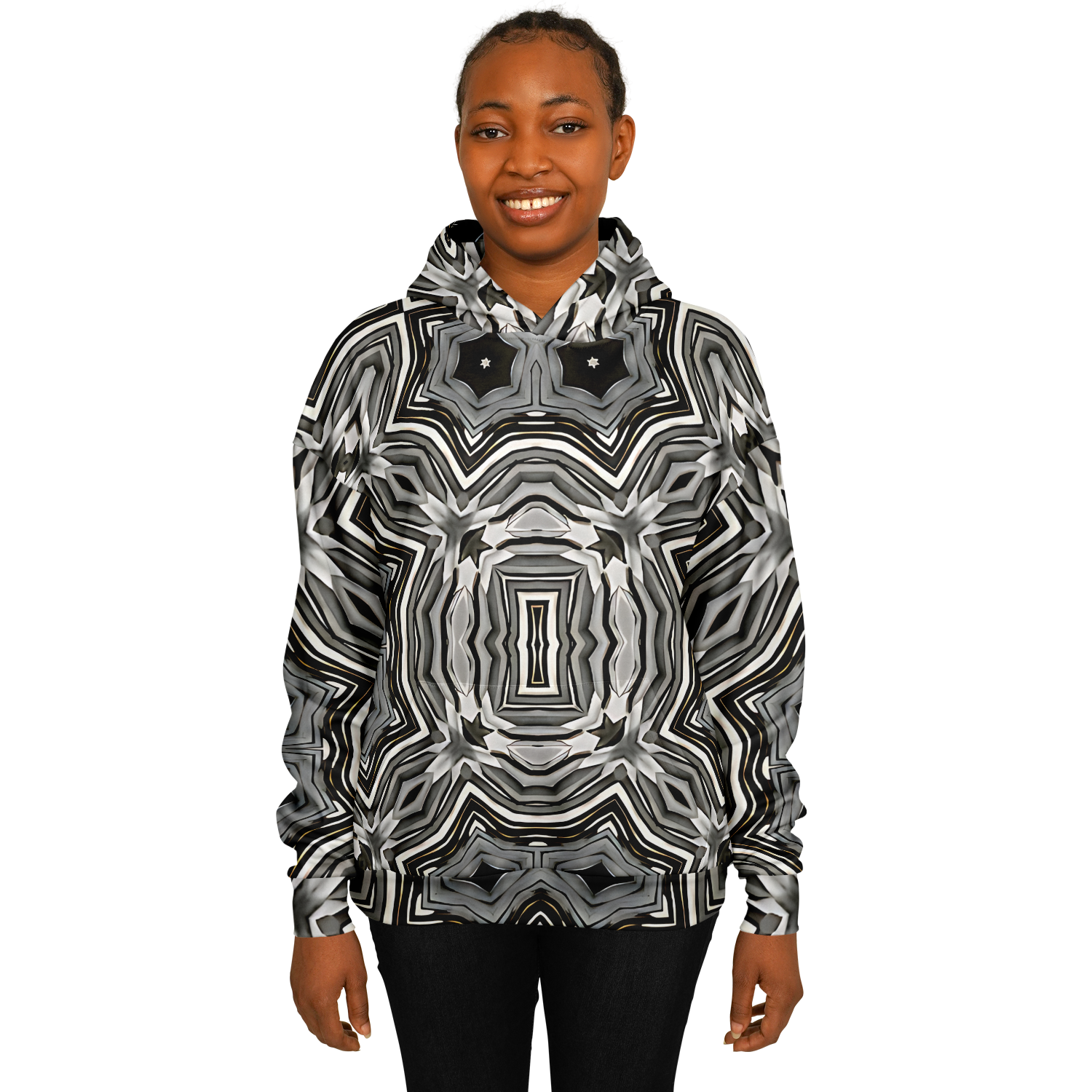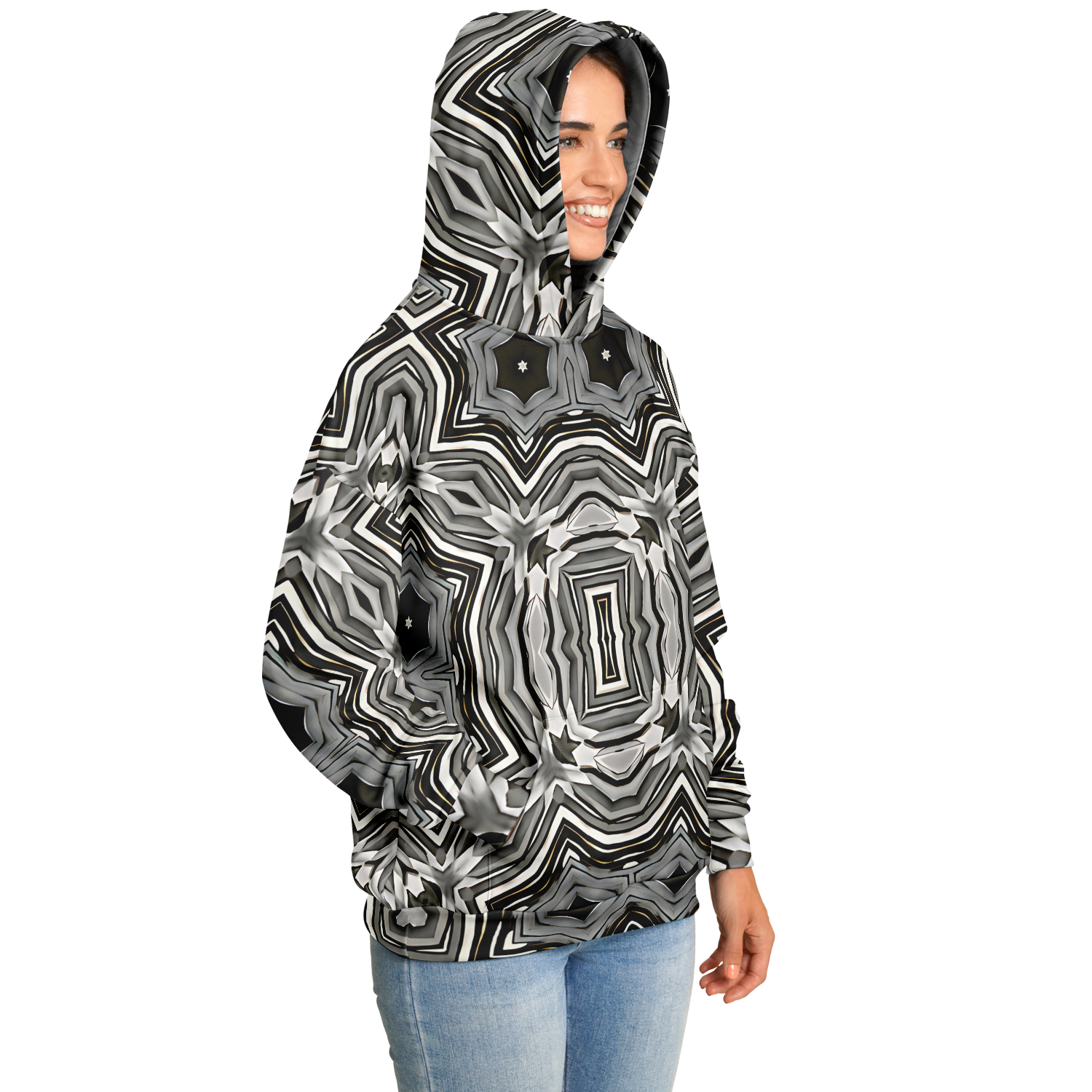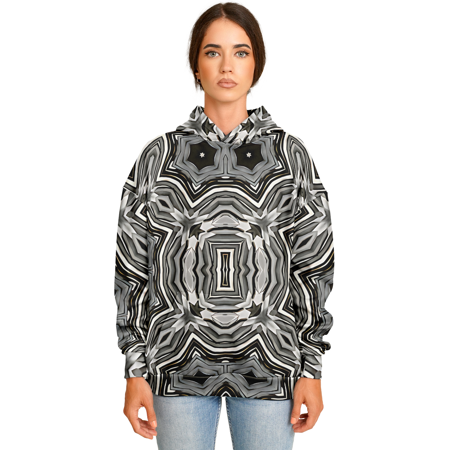 Women's Monochrome Kaleidoscope Pattern Heavyweight Oversized Hoodie