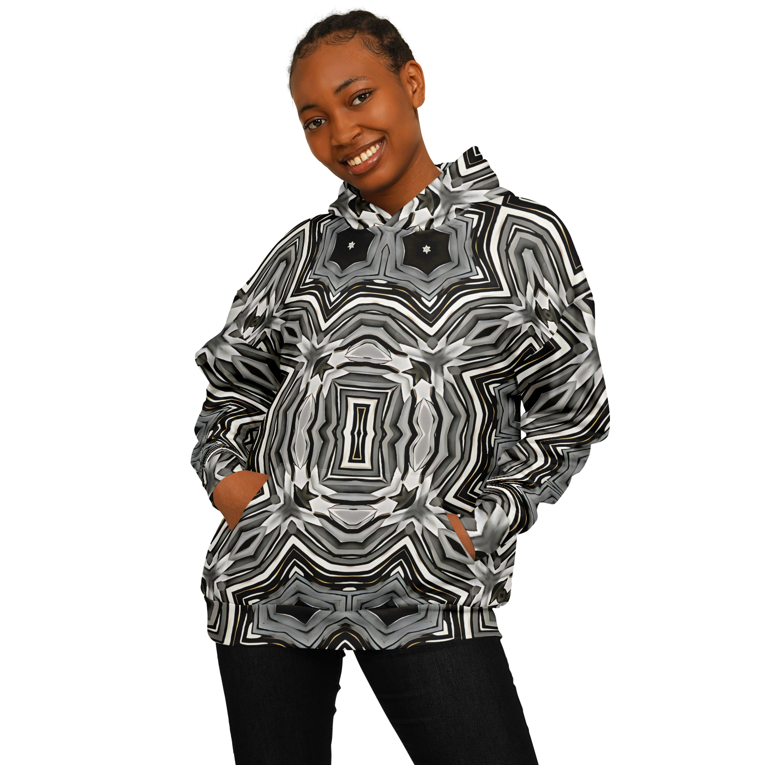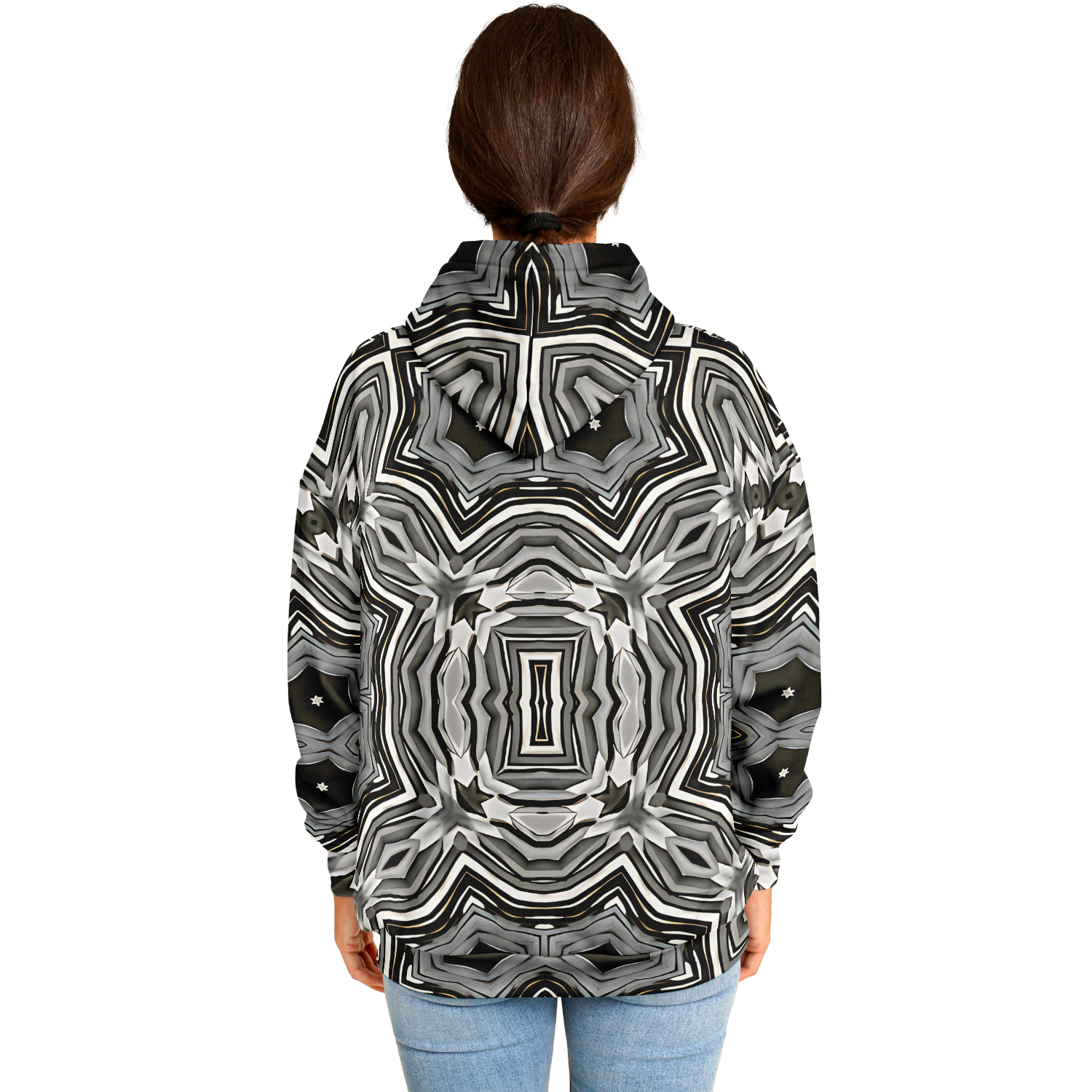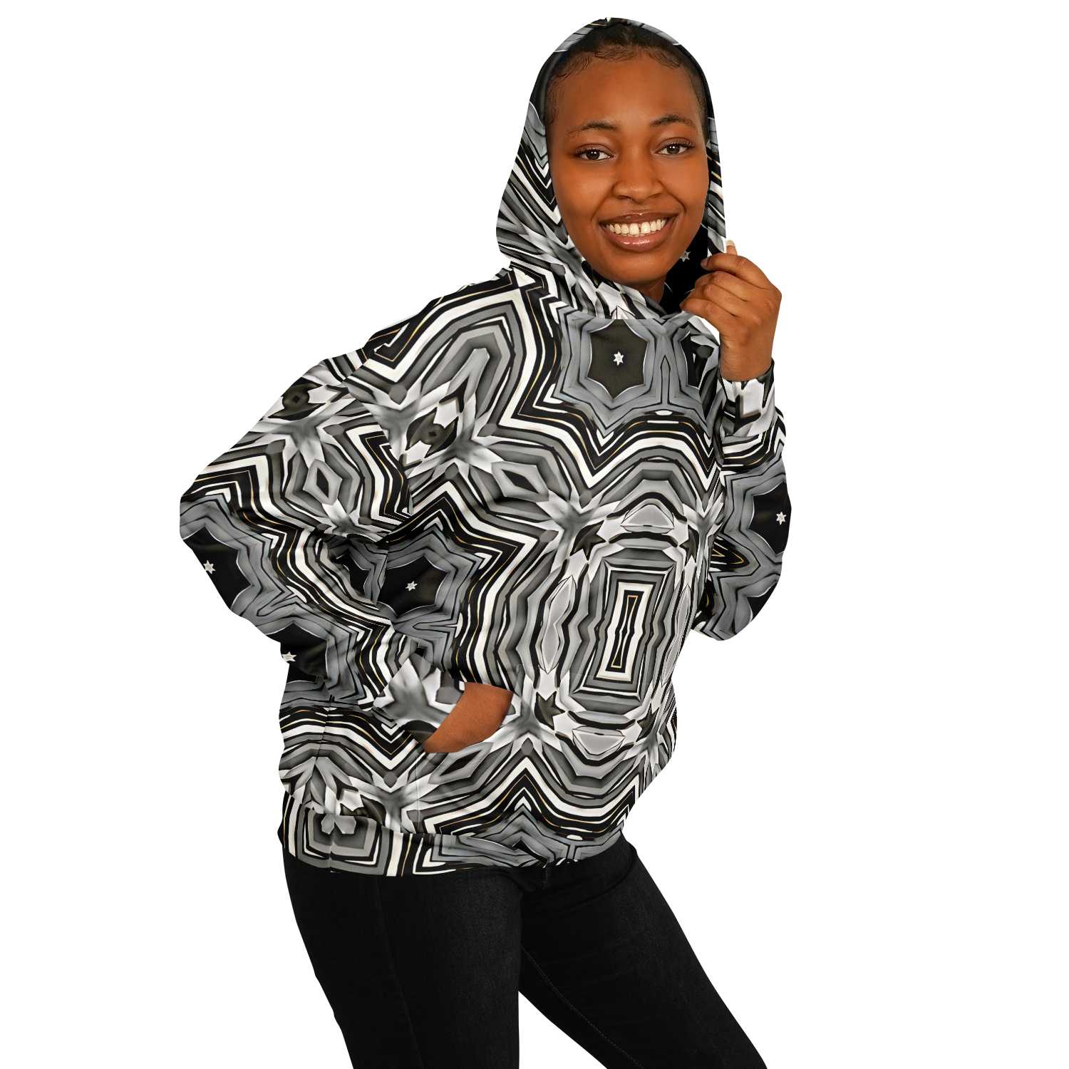 Women's Monochrome Kaleidoscope Pattern Heavyweight Oversized Hoodie
