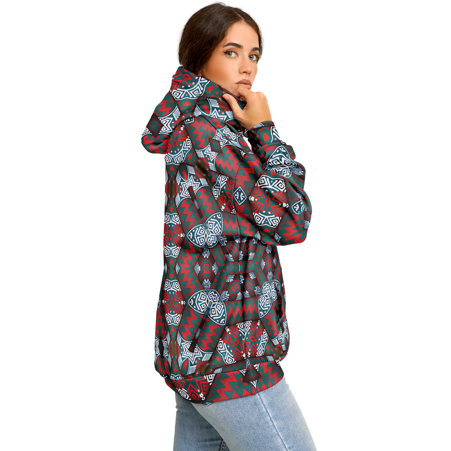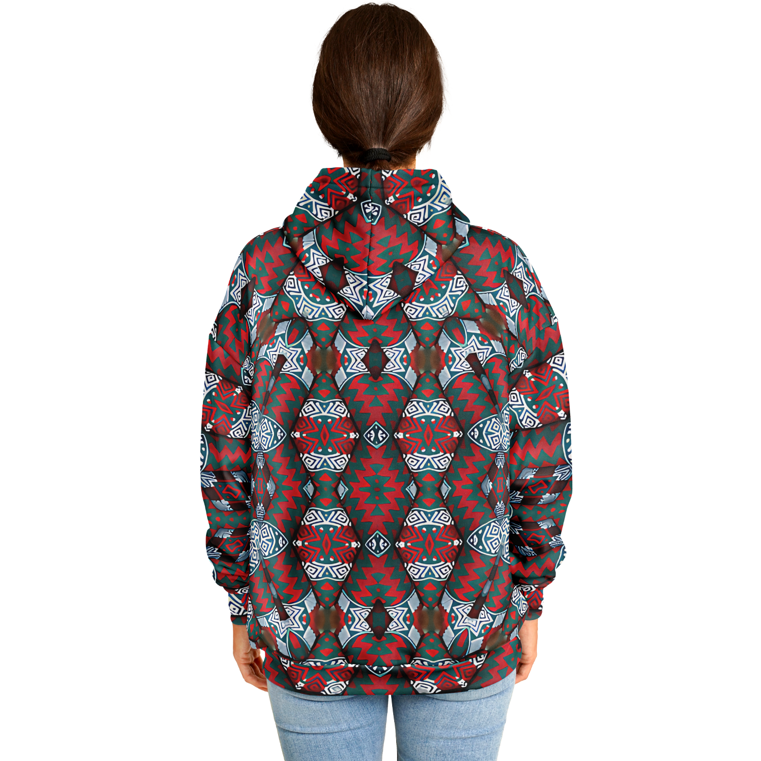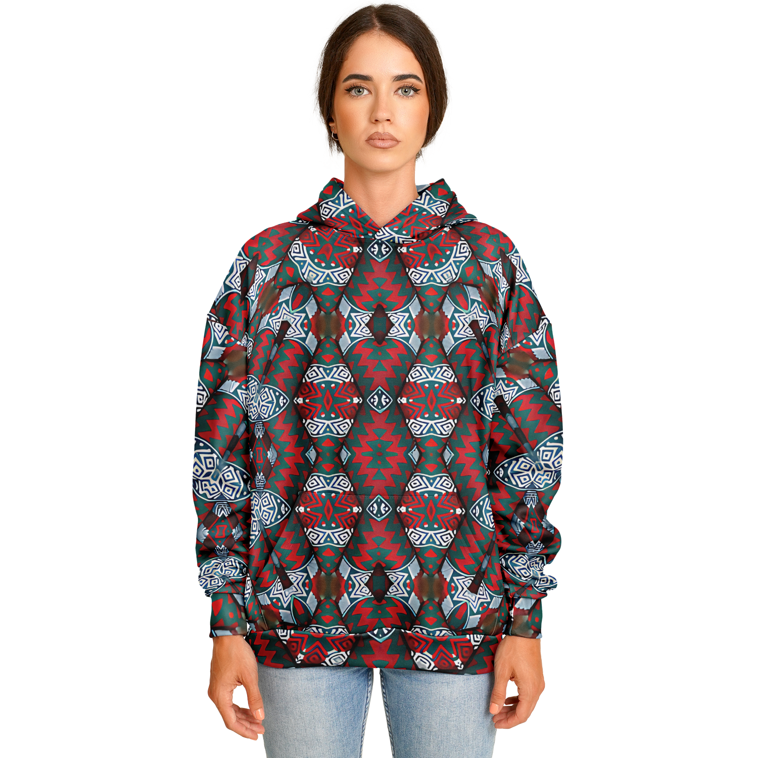 Women's Red & Teal Geometric Pattern Heavyweight Oversized Hoodie