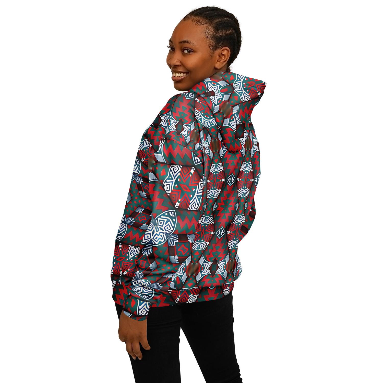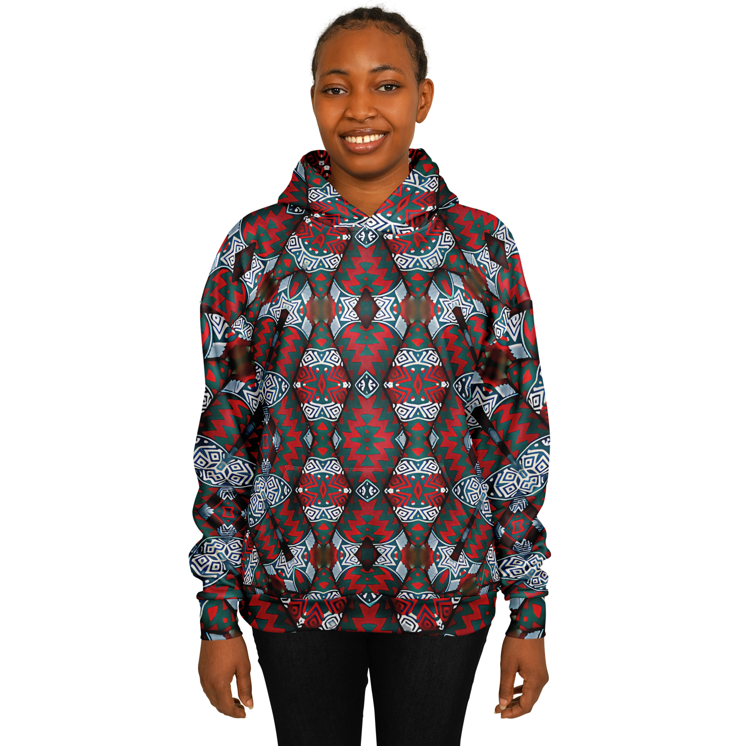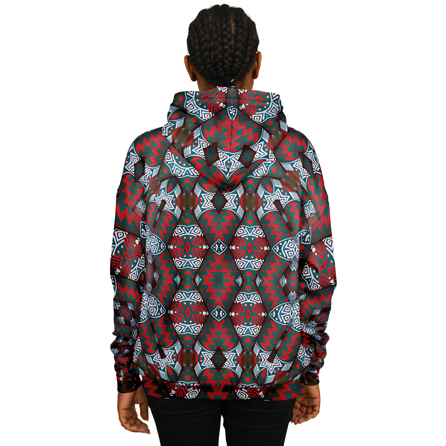 Women's Red & Teal Geometric Pattern Heavyweight Oversized Hoodie