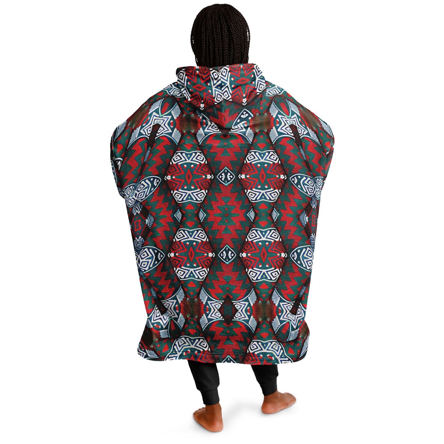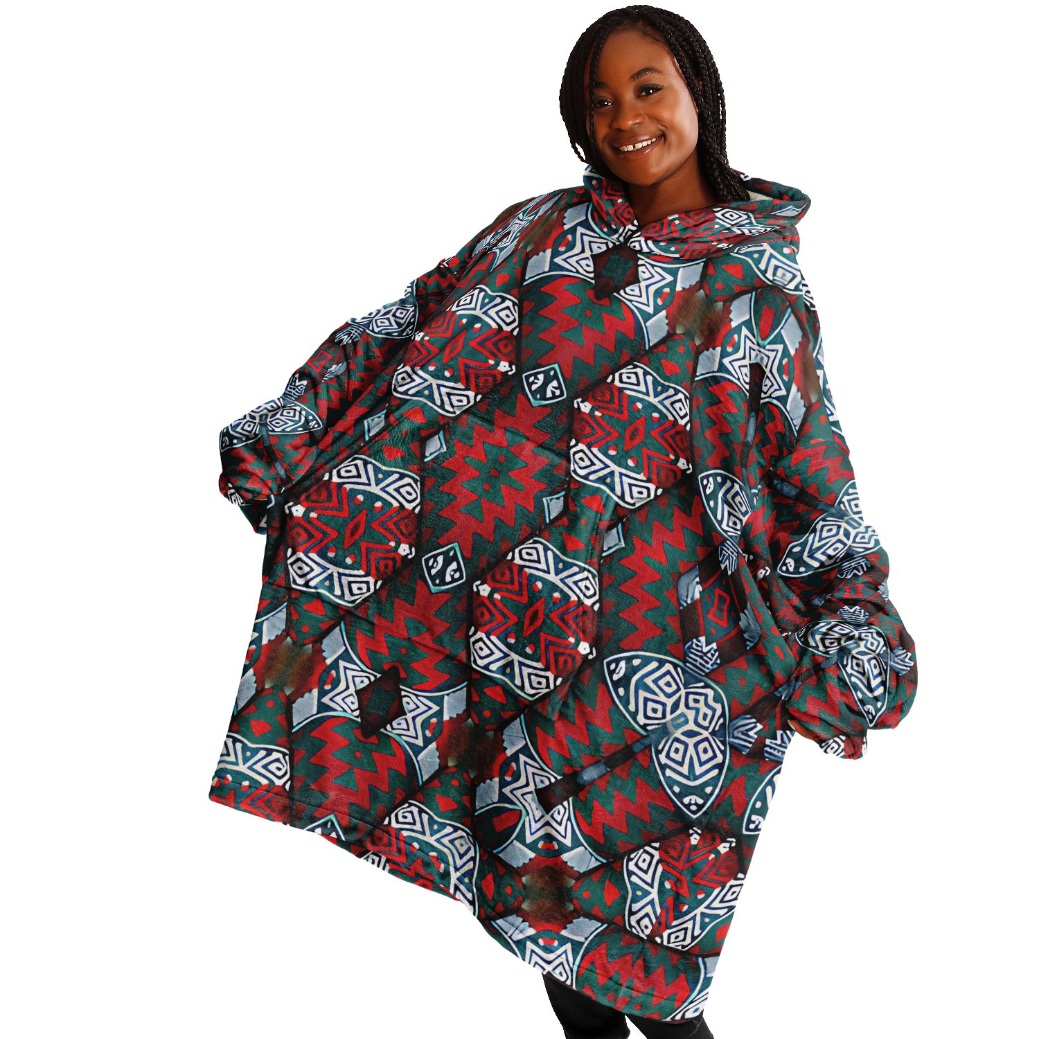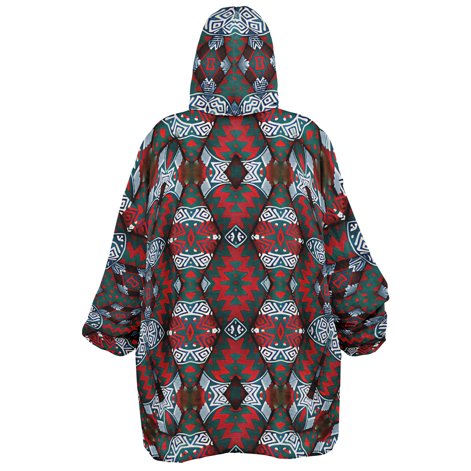 Women's Red & Teal Geometric Pattern Snug Hoodie Economy