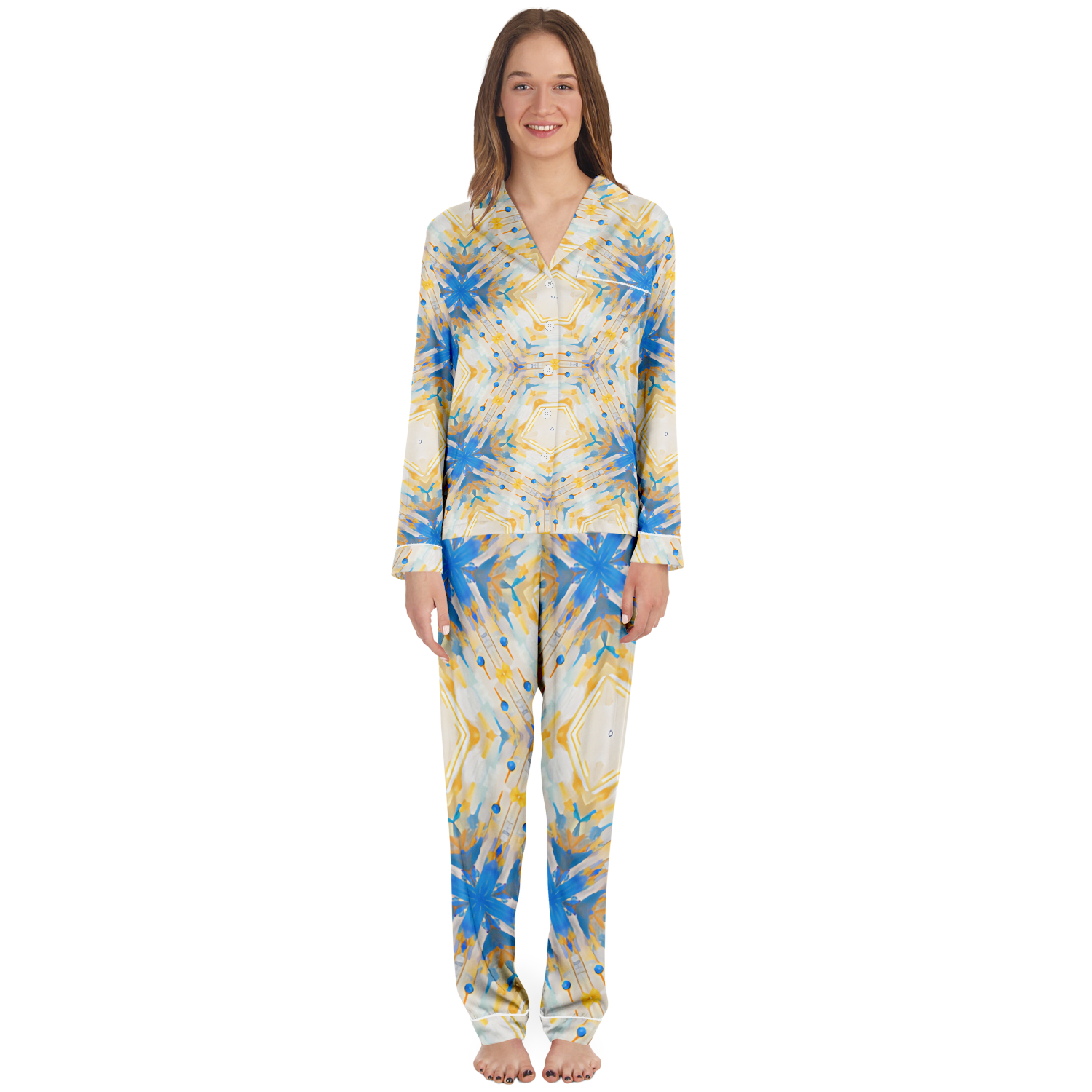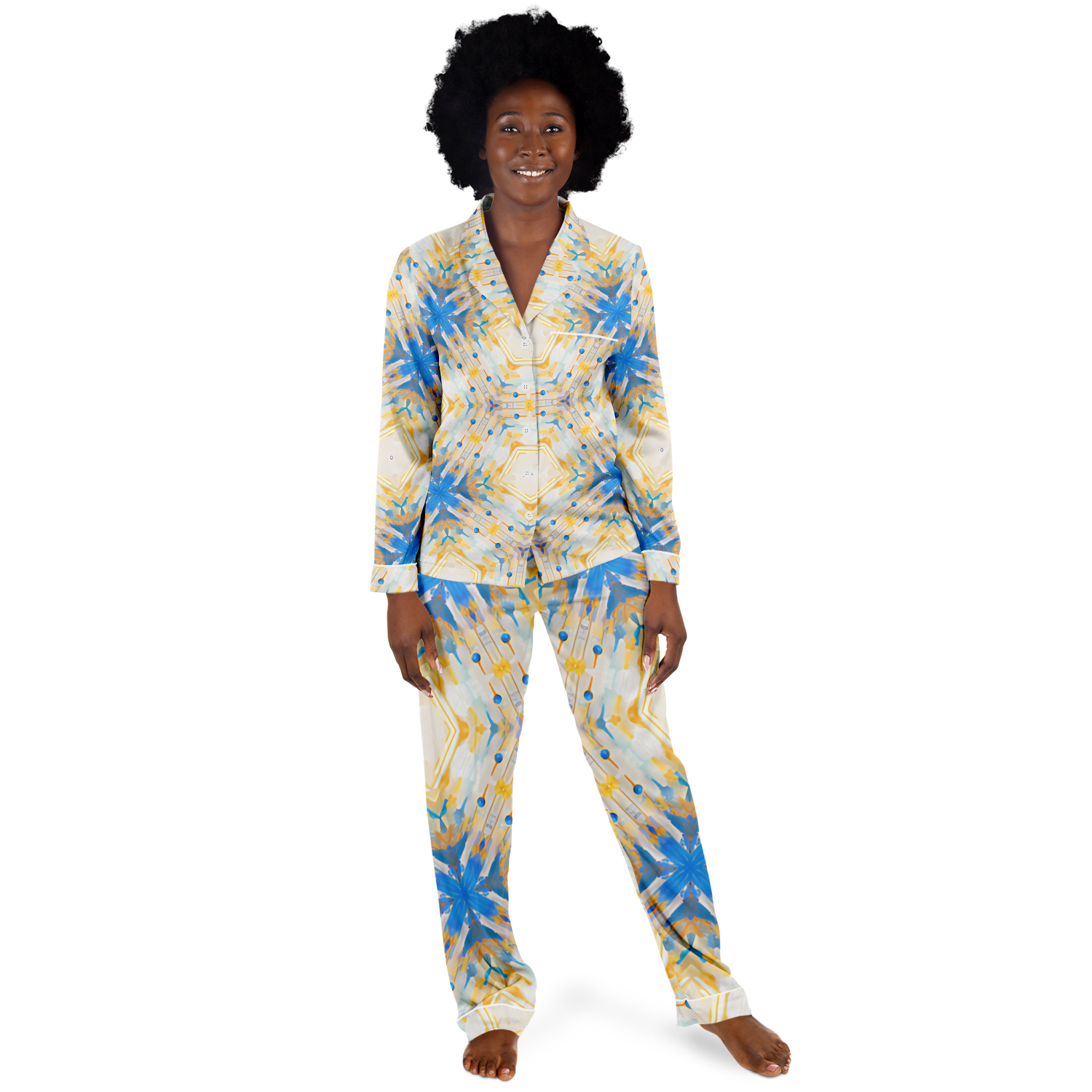 Nothing compares to this ultra-soft fabric that feels like butter on your skin. With its soft, satiny feel, you'll be sleeping on cloud nine every time you wear this set. Plus, with our high definition printing technique, you never have to worry about the prints fading, cracking or peeling even after many washes.