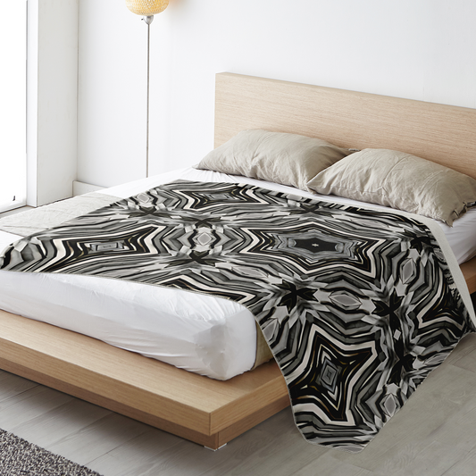 Blanket - Monochrome Kaleidoscope Pattern Premium Microfleece Blanket
